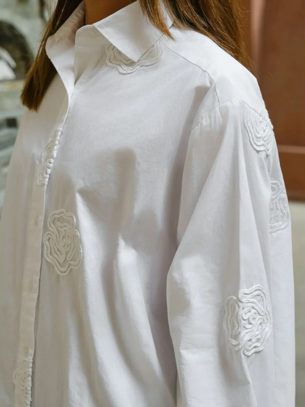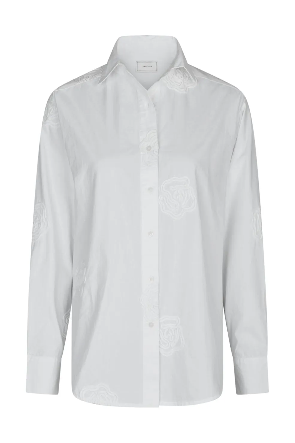 Hvid skjorte fra Neo Noir, lavet af 100 % bomuld. Skjorten har broderede blomster og en oversize pasform.
