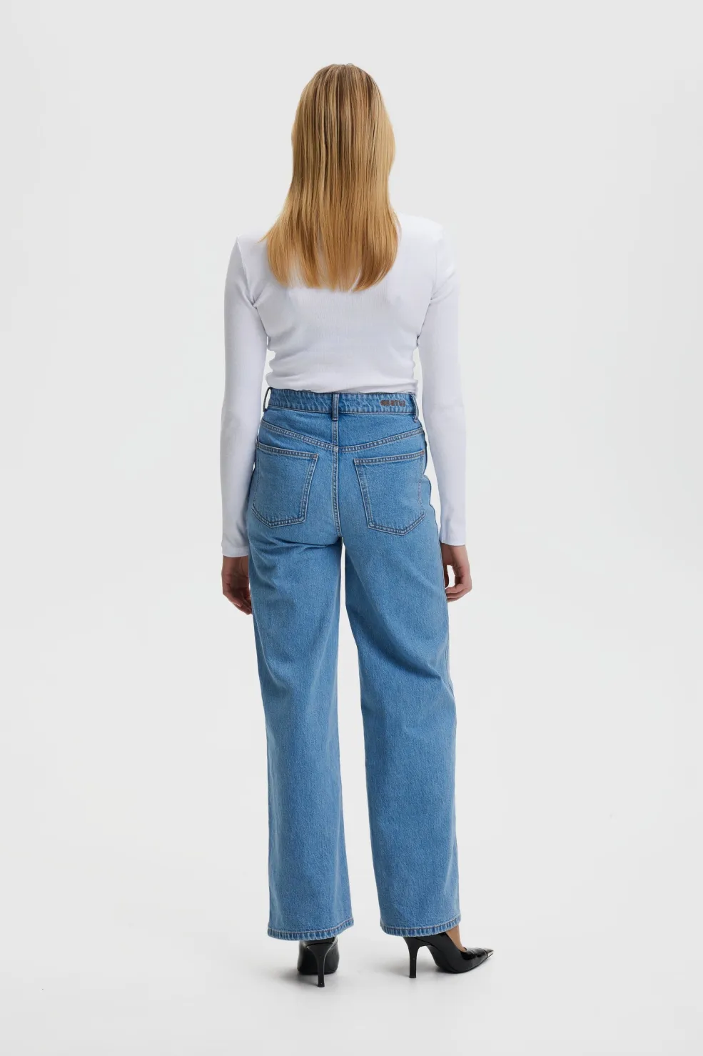 Hvid rullekrave fra Gestuz med ribbet stof og høj hals. Den tætsiddende top har lange ærmer og en enkel konstruktion uden lukning.