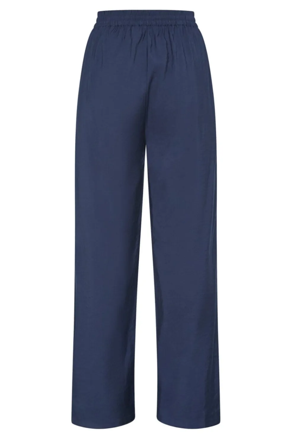 Mørkeblå bukser fra Sisters Point med løs pasform og brede ben. Bukserne har høj talje med elastik og snørelukning samt sidelommer.