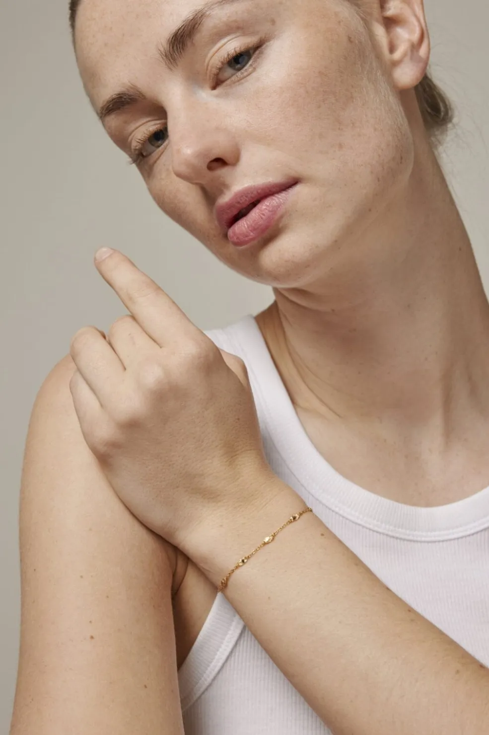 Håndlavet armbånd fra Enamel Copenhagen med kædedesign og teksturerede elementer. Armbåndet har små, runde detaljer langs kæden og er belagt med 18 karat guld.