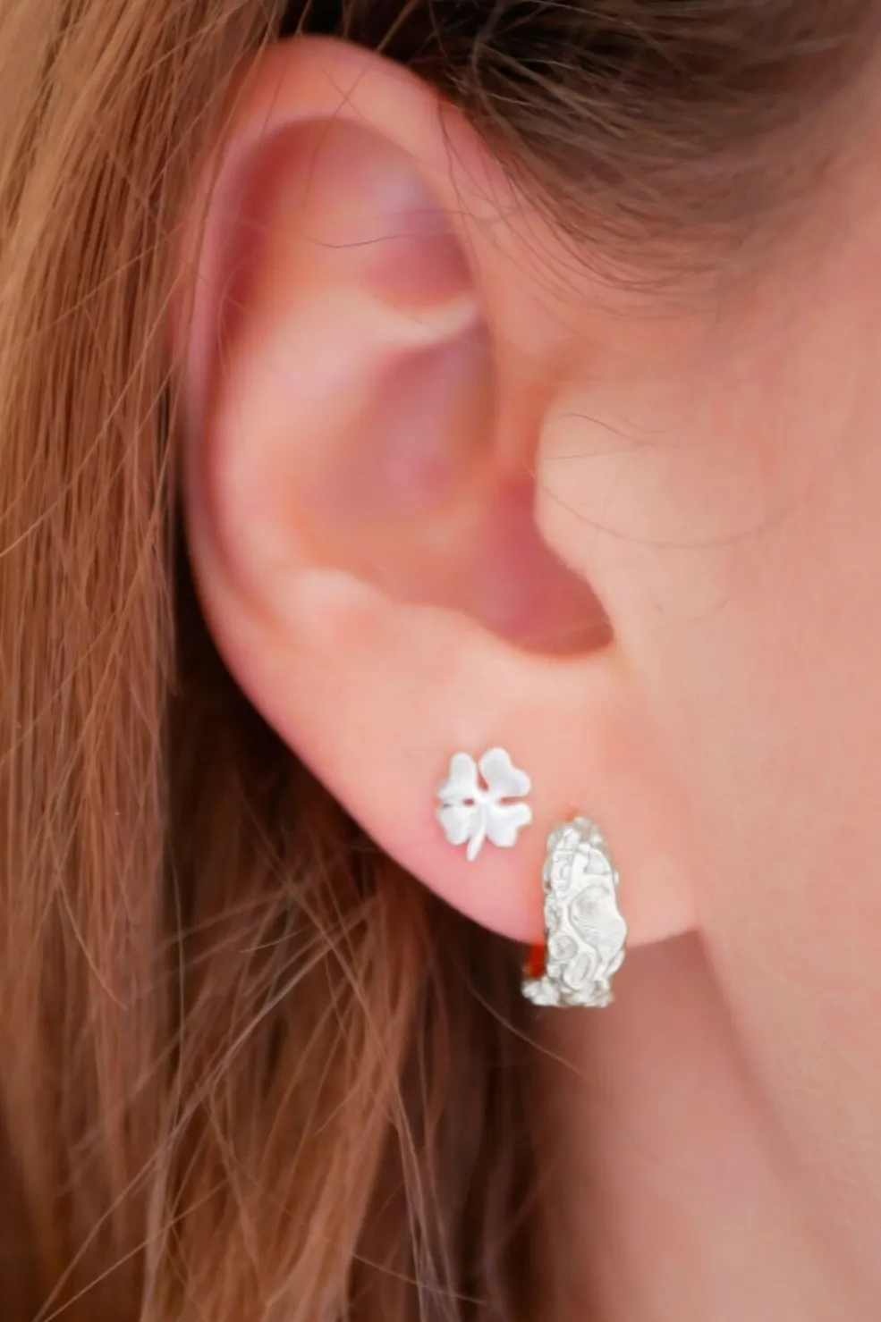 Sølvhoops fra Enamel Copenhagen med ru overflade. Øreringene har en rund form og er fremstillet i sterling sølv med 18 karat forgyldning.