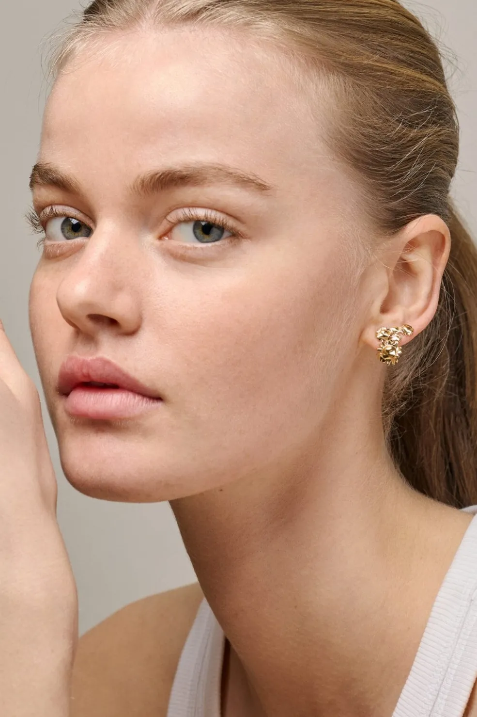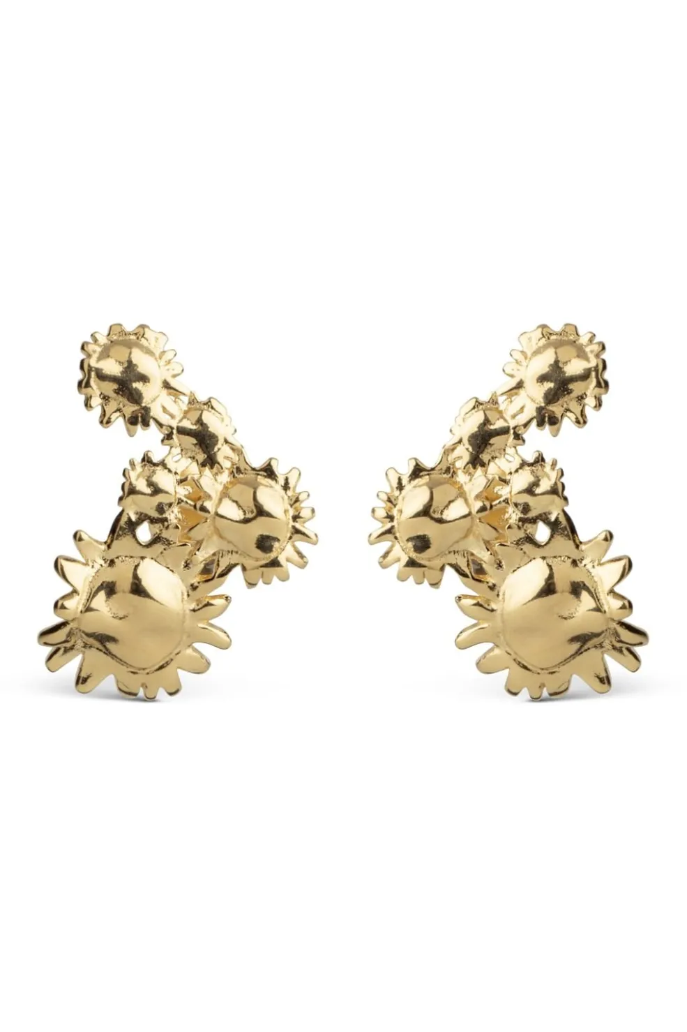 Håndlavede ørestikker i guldbelagt genanvendt sølv med et organisk design. De passer til casual outfits og giver et enkelt touch. Den gyldne finish løfter hverdagsoutfits og tilføjer et varmt skær.