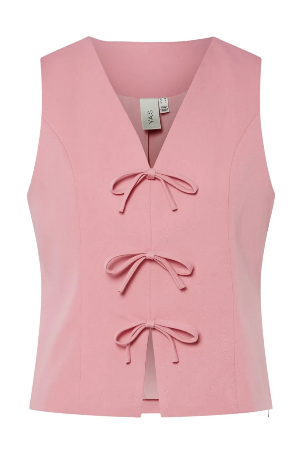 Ærmeløs top fra Y. A.S i bubblegum pink. Toppen har v-halsudskæring og tre dekorative sløjfer på forsiden. Den er fremstillet i et ensfarvet design med regular fit.