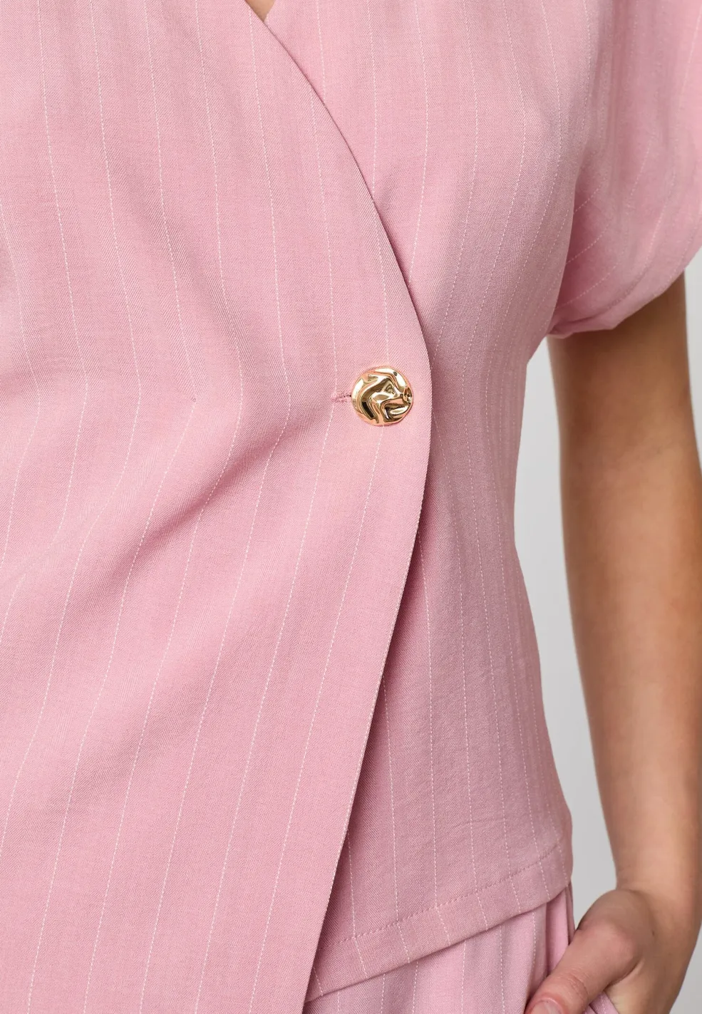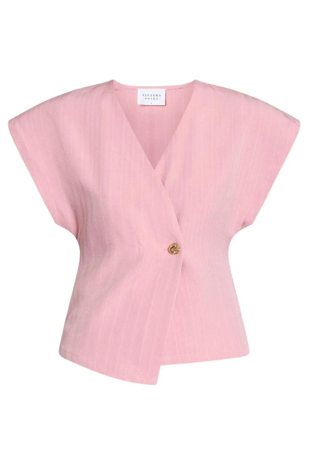 Lyserød vest fra Sisters Point med pinstripe-mønster. Vesten er lavet af 90 % polyester, 7 % viskose og 3 % elastan, og den passer til både formelle anledninger, hverdagen og fest.
