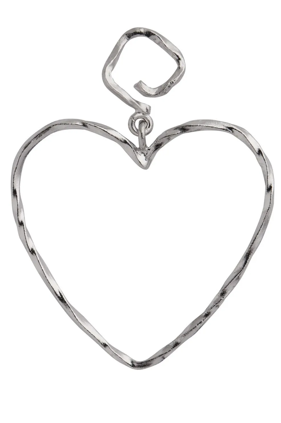 Sølvøreringe fra Stine A med hjerteform og snoet tråddesign. Øreringene har en kunstnerisk udformning med tydelige detaljer i det snoede sølv.