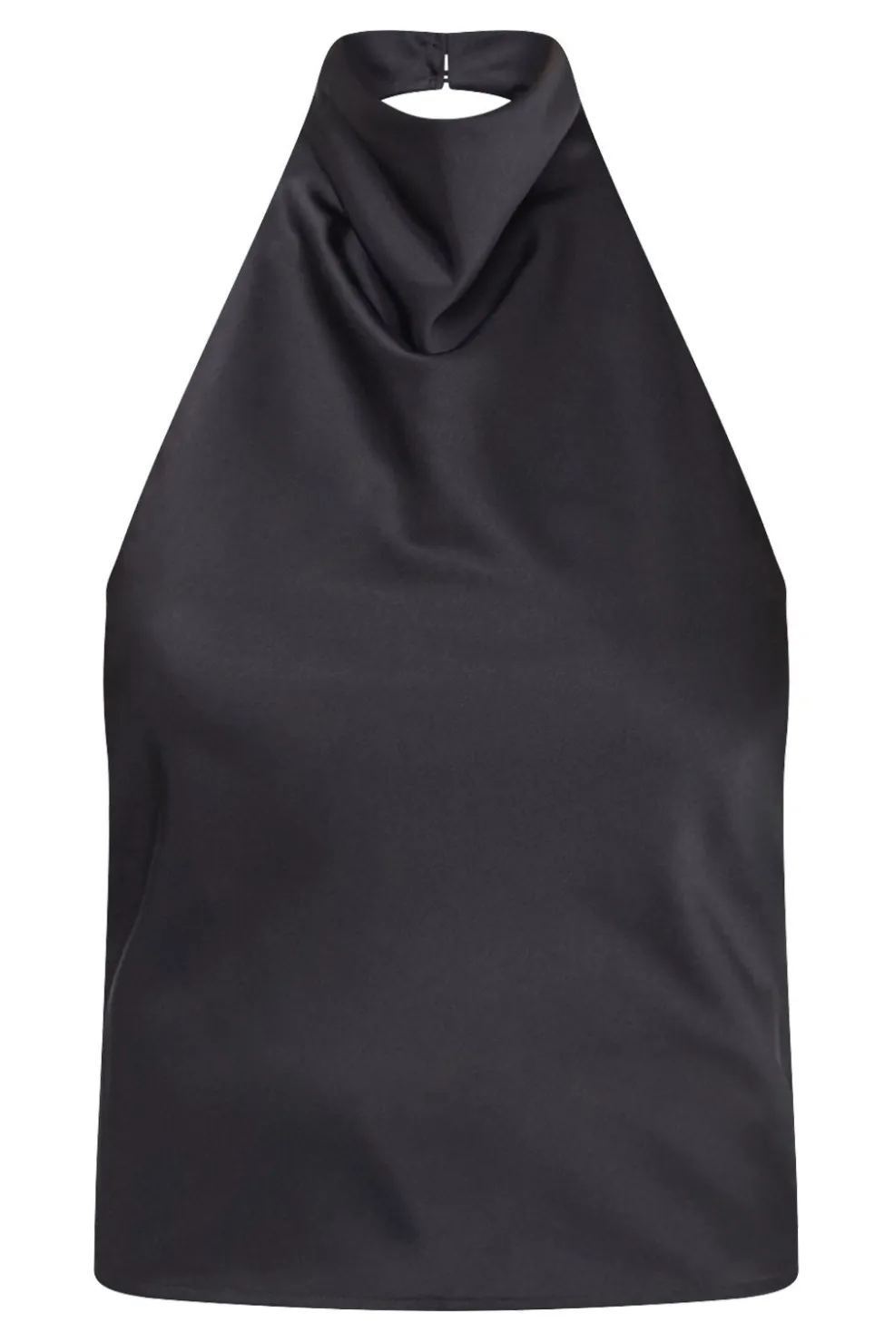 Sort top fra Sisters Point, lavet af 100 % polyester. Toppen har et halterneck-design og passer til formelle og festlige lejligheder.