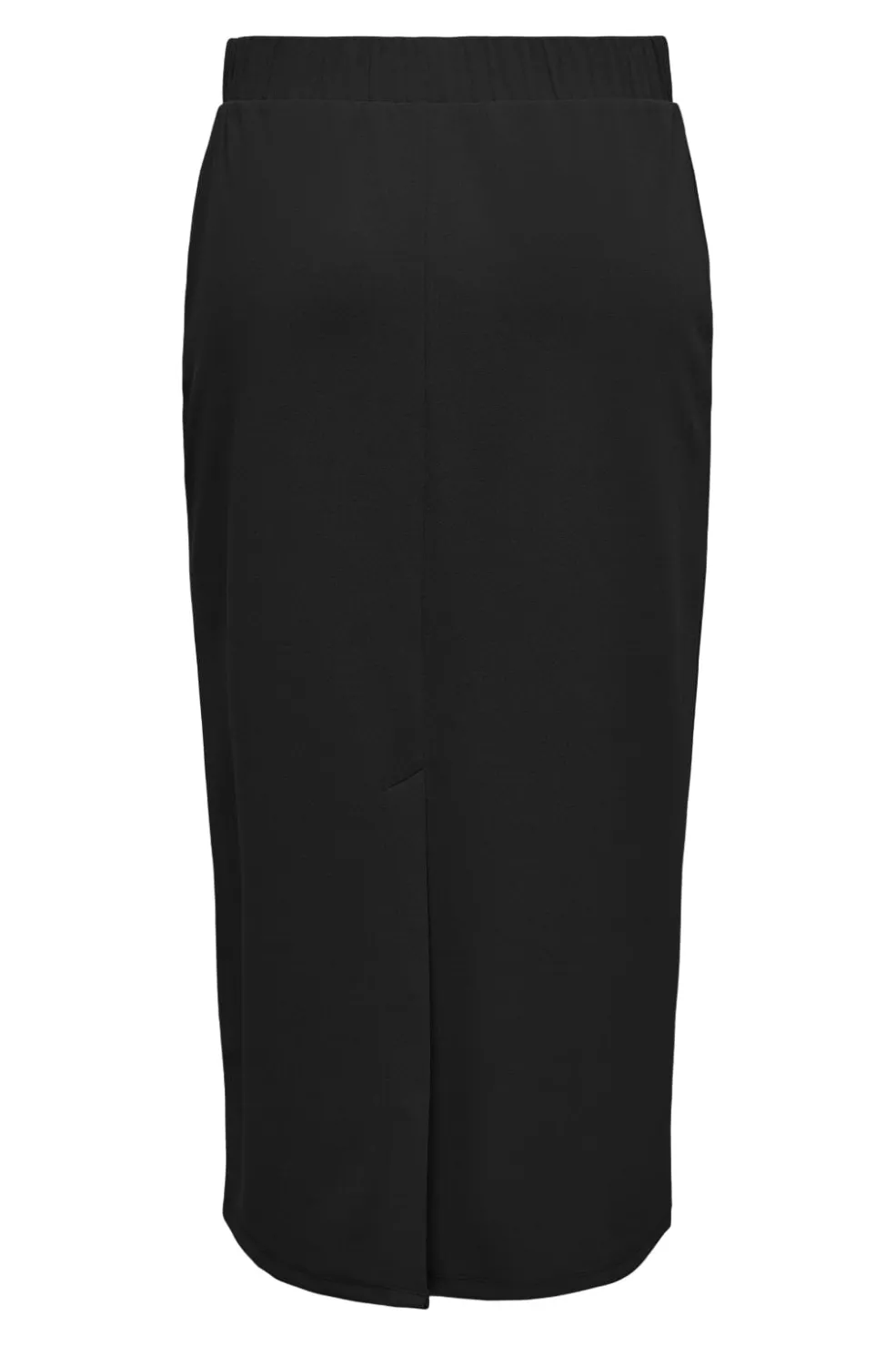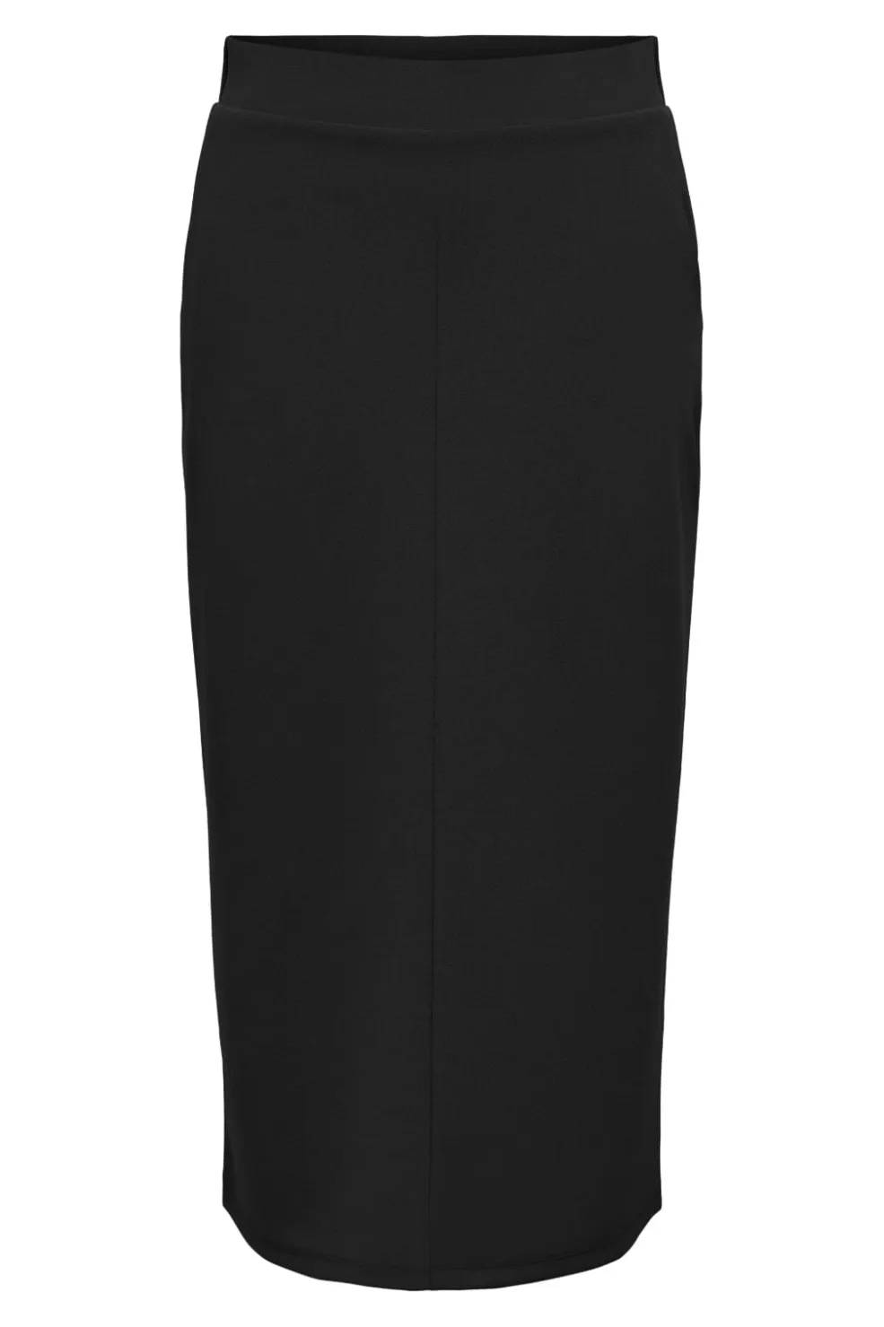 Sort maxinederdel fra JDY, lavet af blødt jerseymateriale. Nederdelen har en elastisk linning og en længde til læggen.