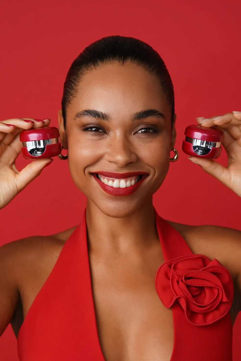 Gel manicure sæt med rød LED-lampe og rubinrød gel neglelak. Sættet indeholder alt det nødvendige til en holdbar gel manicure derhjemme.