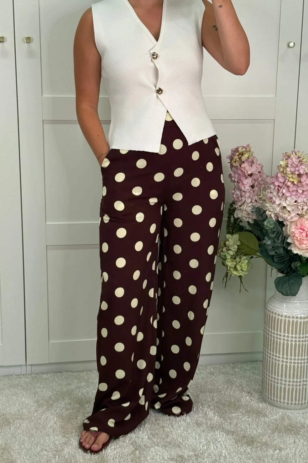 Hvid top fra A-bee, lavet af 100 % bomuld. Toppen har en V-hals, slim fit-pasform og knapper som lukning.
