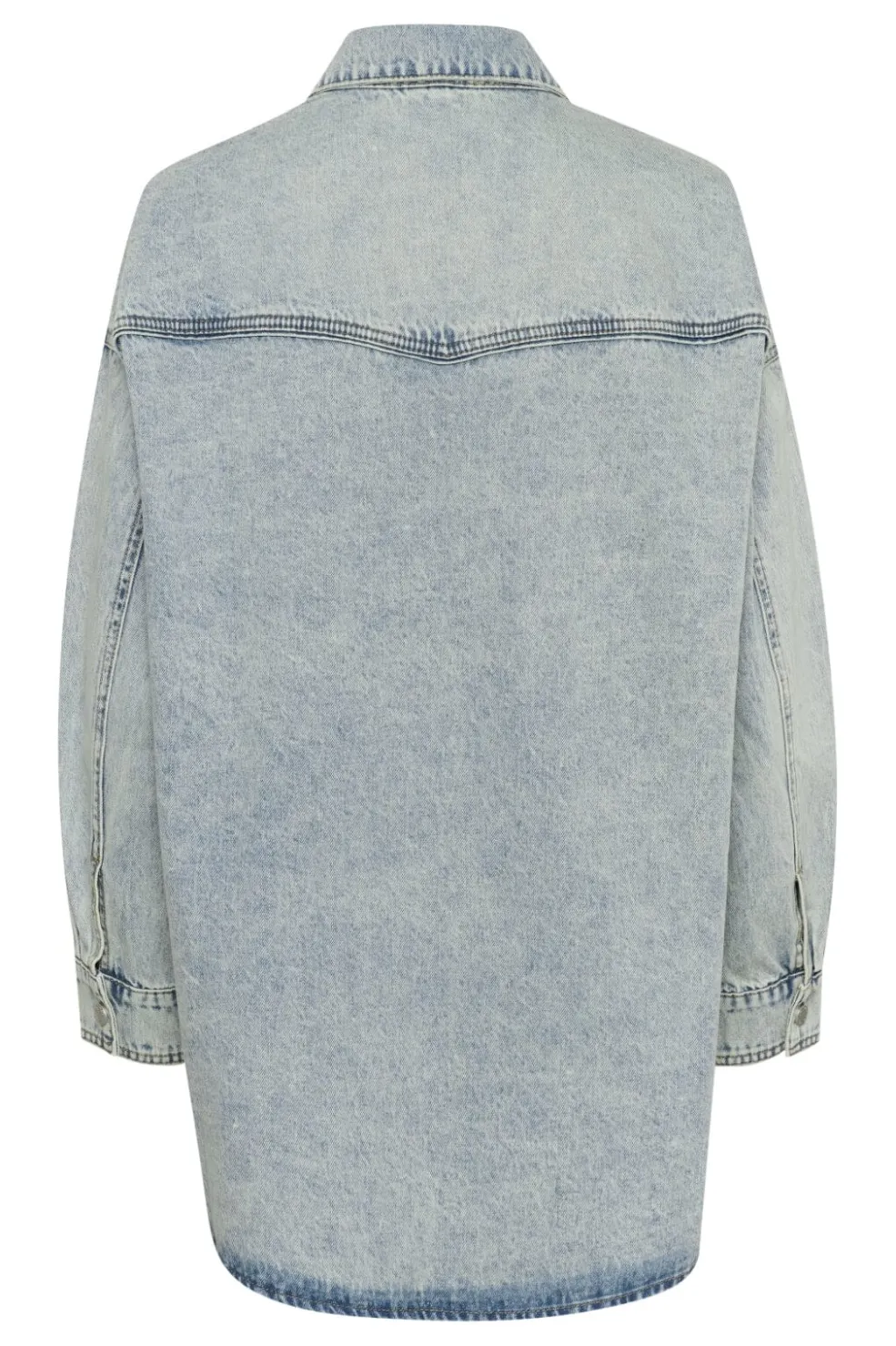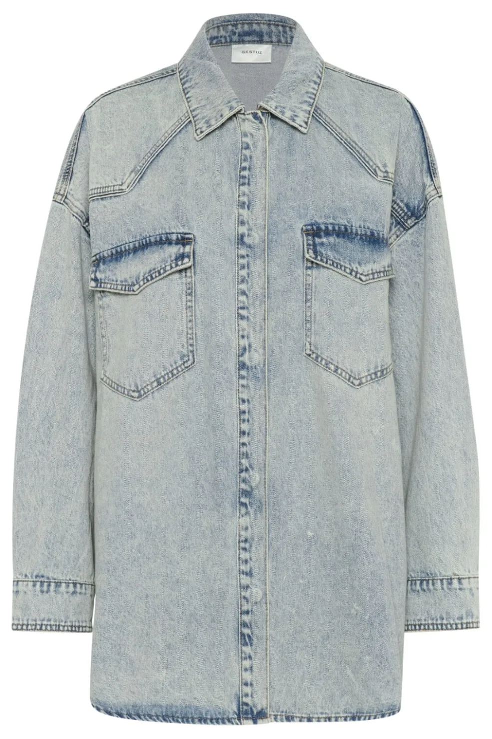 Denimskjorte fra Gestuz i en lys acid wash. Skjorten har en oversized pasform med lange ærmer og klassisk krave.
