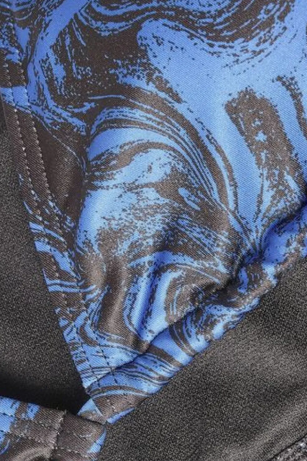 Bikinioverdel fra Gestuz i blå og sort mønster. Den trekantede top har bindebånd i nakken og om ryggen samt sløjfedetaljer, der giver mulighed for tilpasning.