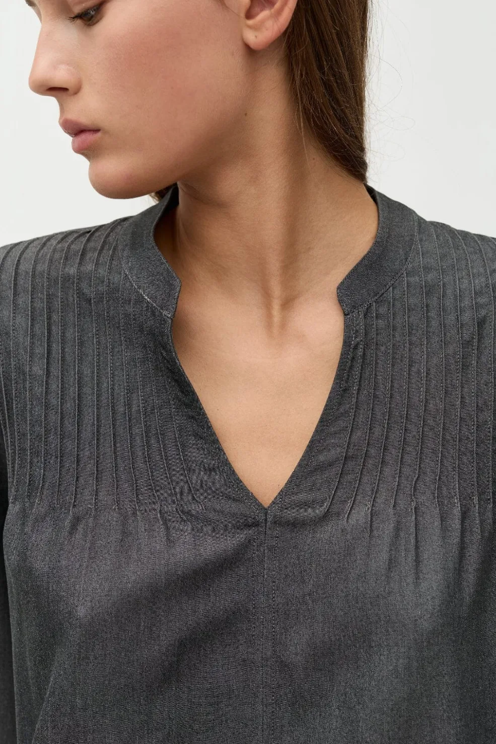 - V-halsudskæring med plisseringer