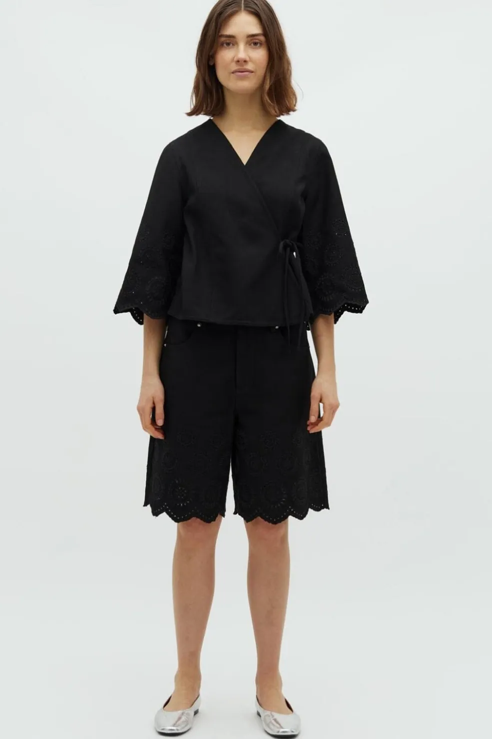- 3/4-ærmer med scallop-kant