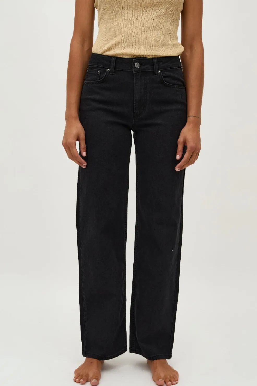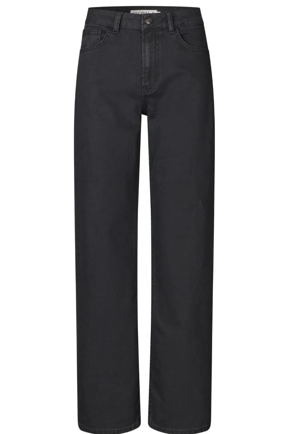Sorte jeans fra Global Funk med høj talje og bred benåbning. Bukserne har en afslappet pasform og er lavet i en blød bomuldsblanding med stræk.