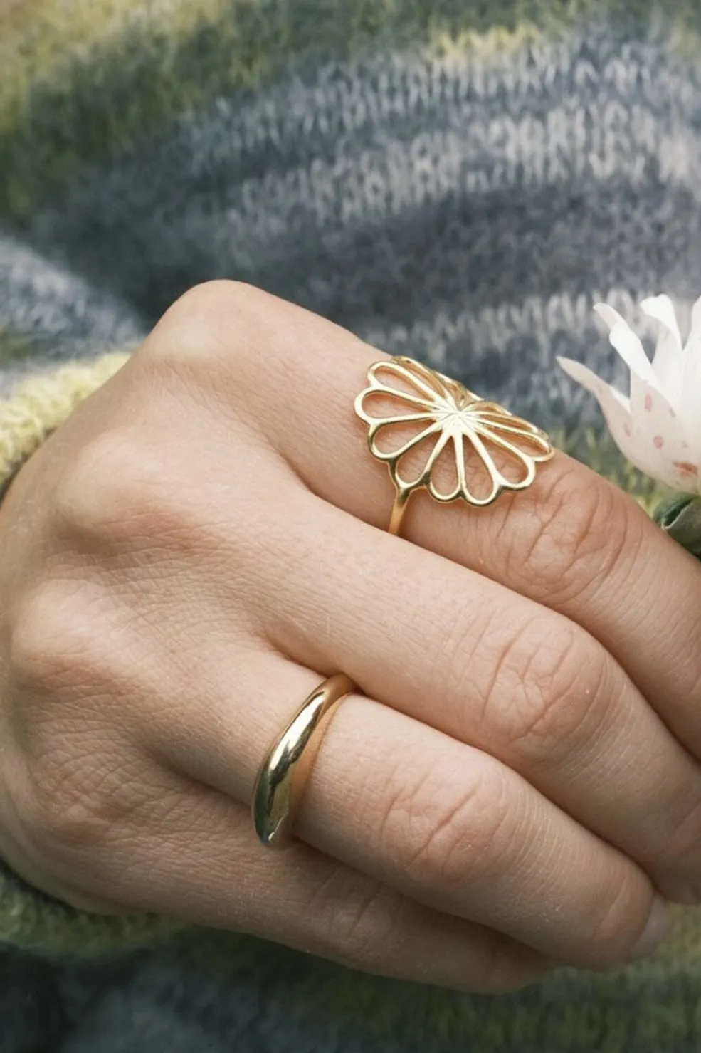 Rund ring fra Pernille Corydon Jewellery med glat overflade og buet design. Den polerede ring har en organisk form og er lavet af forgyldt sterling sølv.