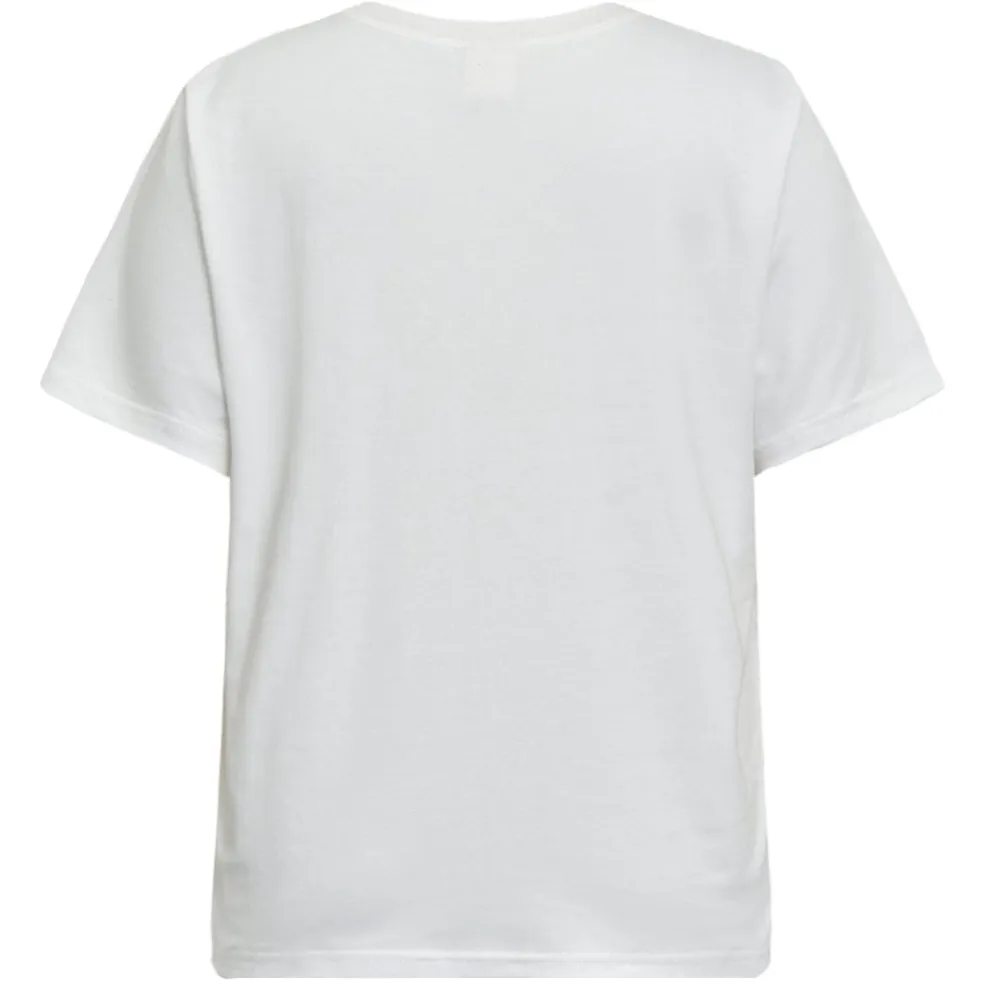 Hvid t-shirt fra Gossia med et grafisk print på forsiden. Printet viser en silhuet med hat og det røde nummer 73. T-shirten har en rund halsudskæring og korte ærmer.