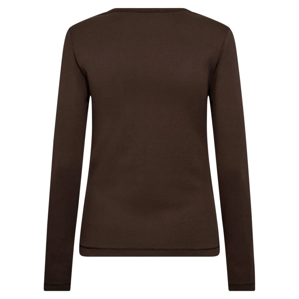 Langærmet t-shirt fra Co´Couture i mørkebrun. Blusen har et broderet logo på brystet og dekorative syninger.