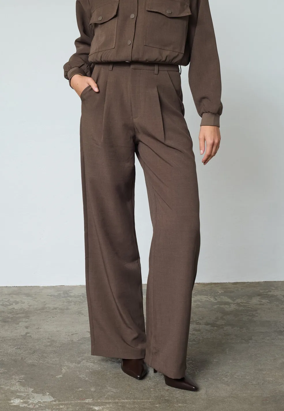 Brune bukser fra Sisters Point i en jordnær teakfarve. Bukserne passer til fest, hverdag og formelle anledninger.