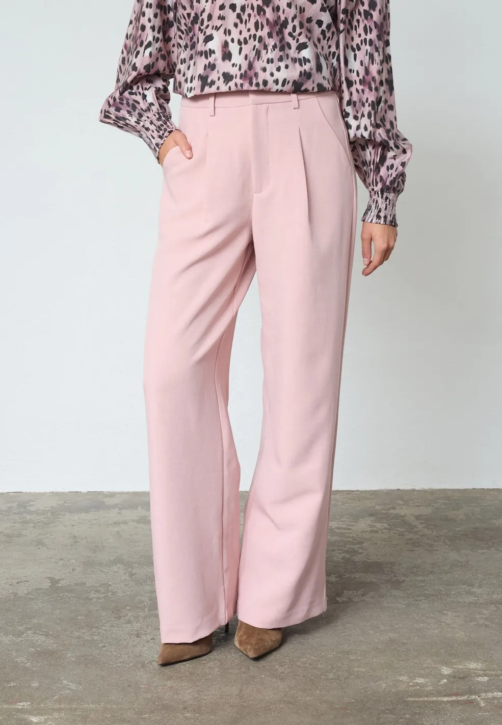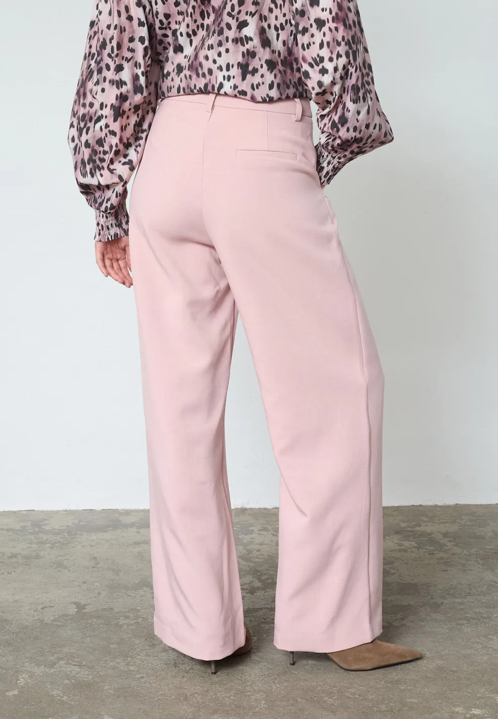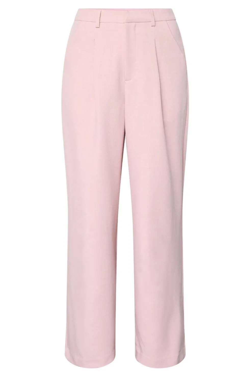 Lys lilla bukser fra Sisters Point med en løs pasform og vide ben. Bukserne har læg foran og praktiske sidelommer.