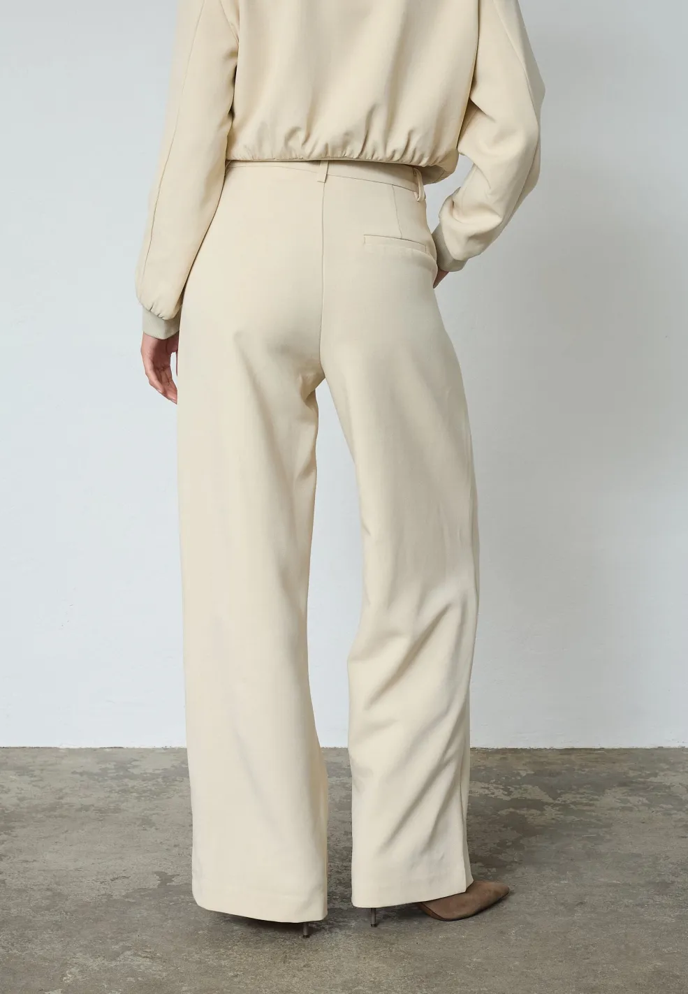 Habitbukser fra Sisters Point i en lys beige nuance. Bukserne har vide ben, høj talje og en løs pasform med læg foran.