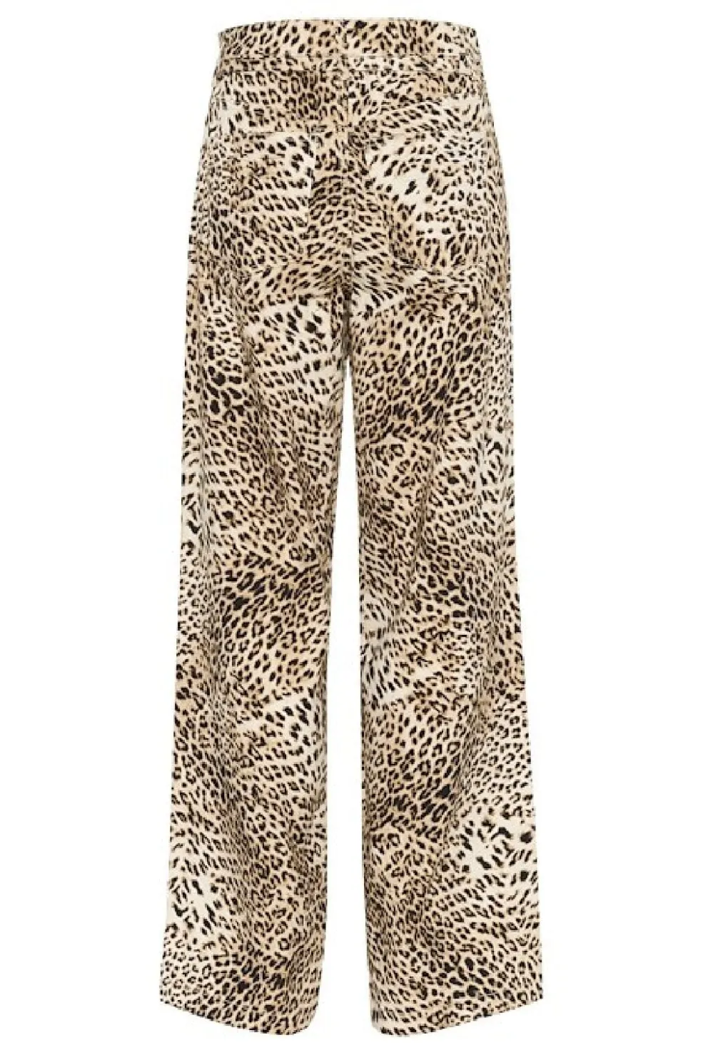 Bukser fra Gestuz med leopardprint i beige og hvide nuancer. Bukserne har høj talje og gulvlængde med en bred benform, der giver god bevægelsesfrihed.