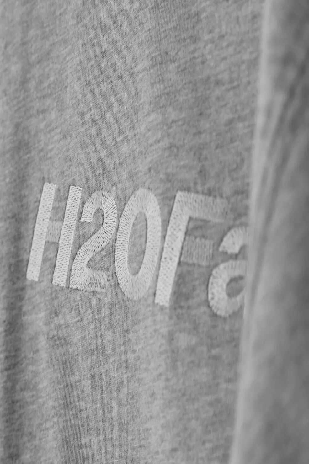 Grå meleret t-shirt fra H2O Fagerholt med oversized pasform. T-shirten har et broderet H2OFa-logo på brystet og en rund halsudskæring.