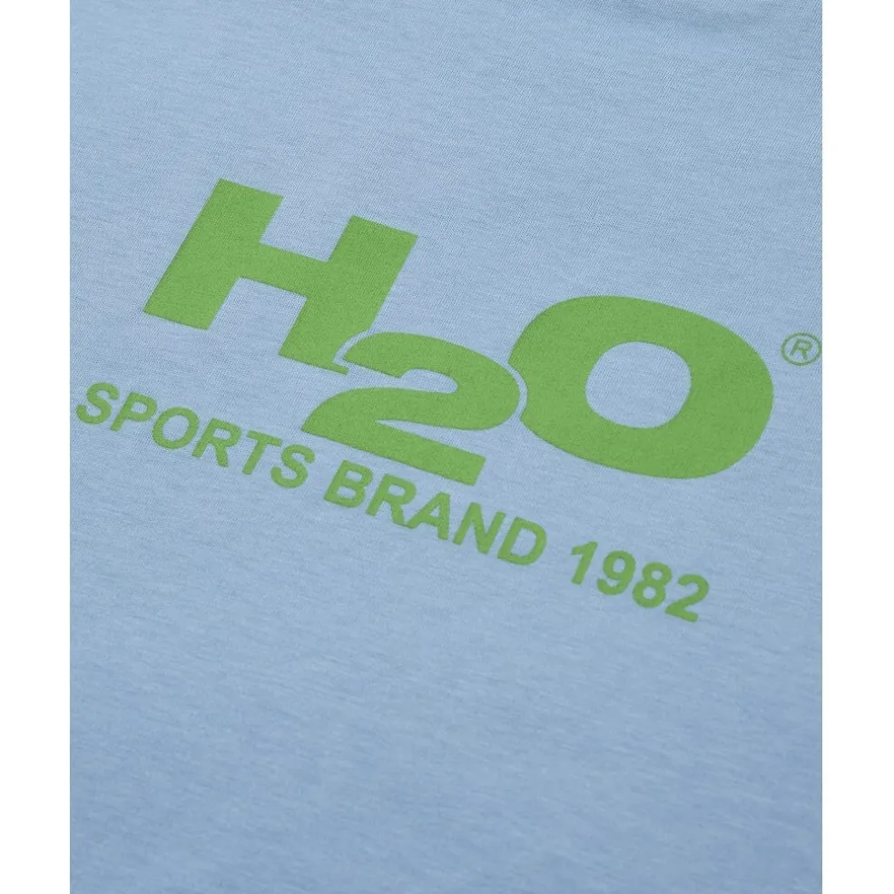Lyseblå t-shirt fra H2O med grønt logo på forsiden. T-shirten har en regular fit og er fremstillet af bomuld.
