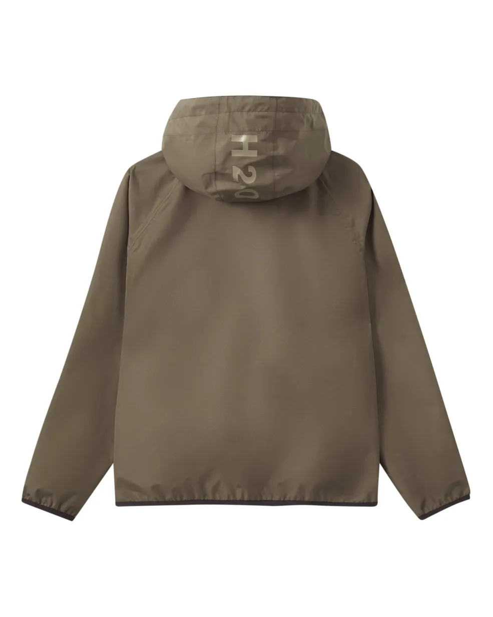 Let regnjakke fra H2O i farven Dusty Oak. Jakken er fremstillet af genbrugt polyester med tapede sømme og ECO-vandafvisning.