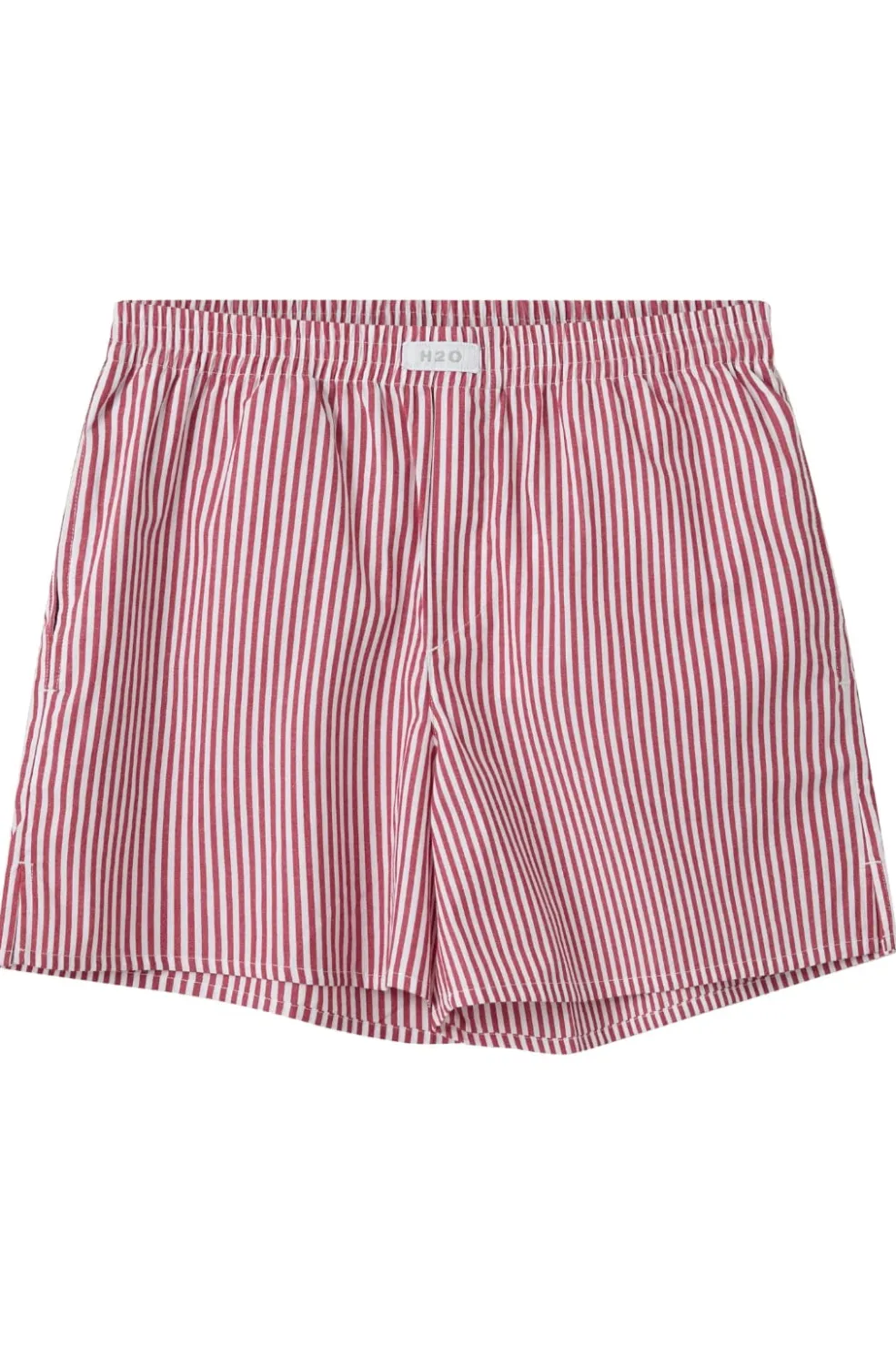 Stribede pyjamashorts fra H2O med rød-hvidt mønster. Shortsene har en elastisk linning, praktiske sidelommer og slidser i sidesømmen for god bevægelighed.