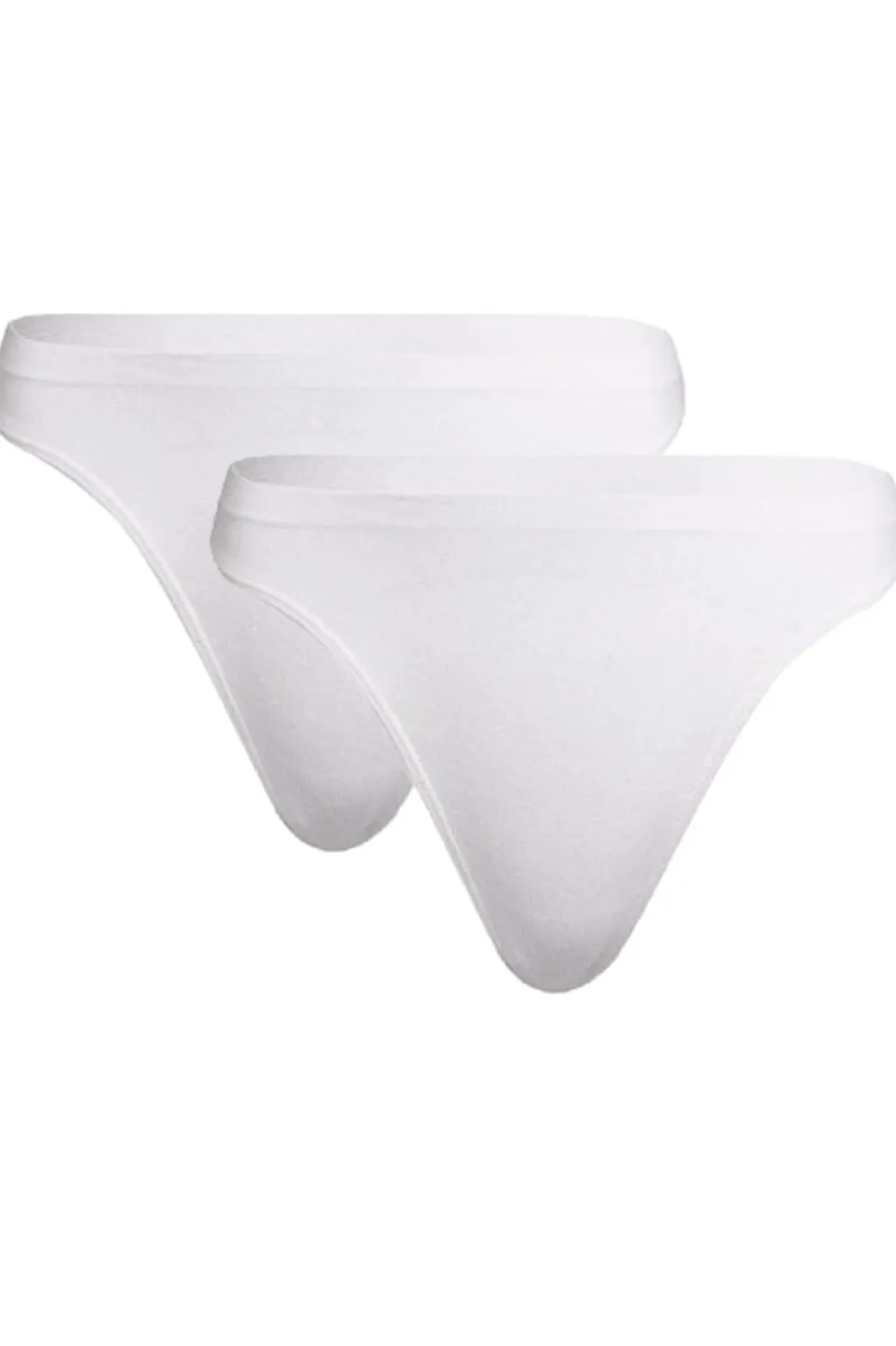 Hvide stringtrusser fra Soft Basic i to-pak. Lavet af bambusviskose med antibakterielle egenskaber og god åndbarhed. Trusserne har en bred elastisk talje og et ensfarvet design.