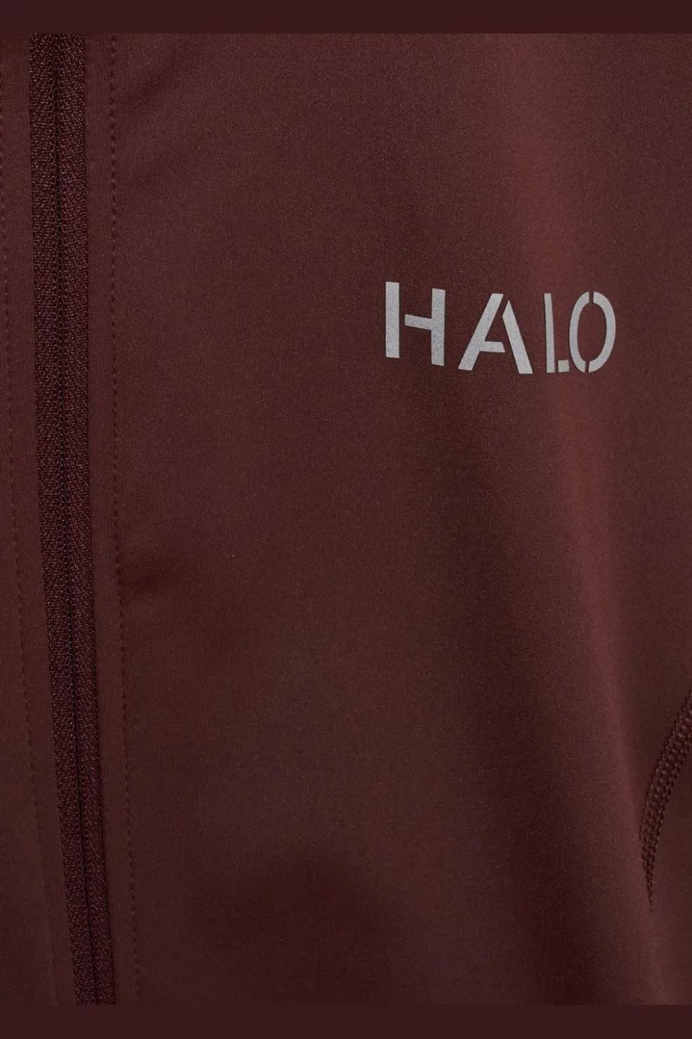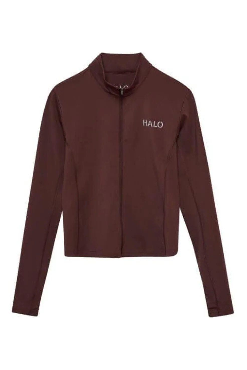 Trøje med lynlås fra Halo i mørkebrun farve. Fremstillet i fleksibelt polyamid med elastan for bevægelsesfrihed og holdbarhed.