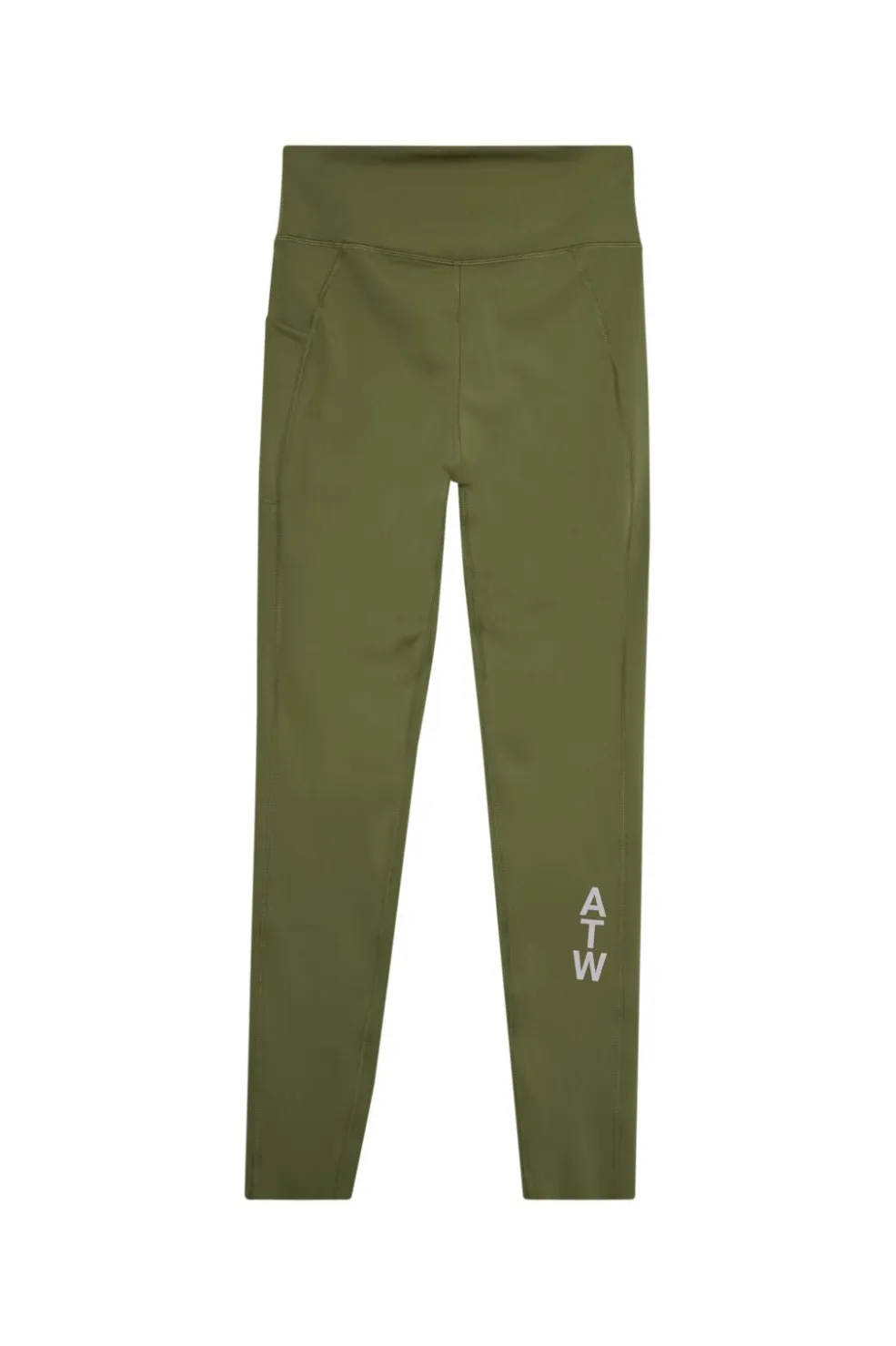 Olivengrønne træningstights fra Halo, fremstillet i et fleksibelt materiale med dekorative syninger. Tightsene har en højtaljet pasform og ankellængde.