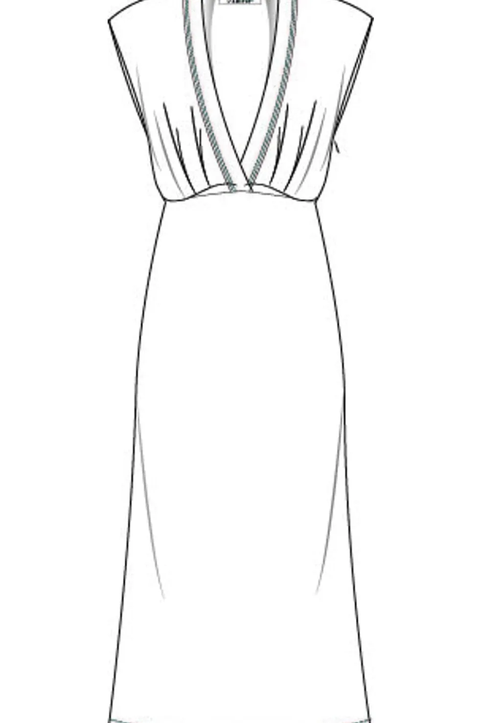 Sort kjole fra Haute L’Amitié med draperet design og V-udskæring. Kjolen har korte ærmer og rækker til midt på læggen.