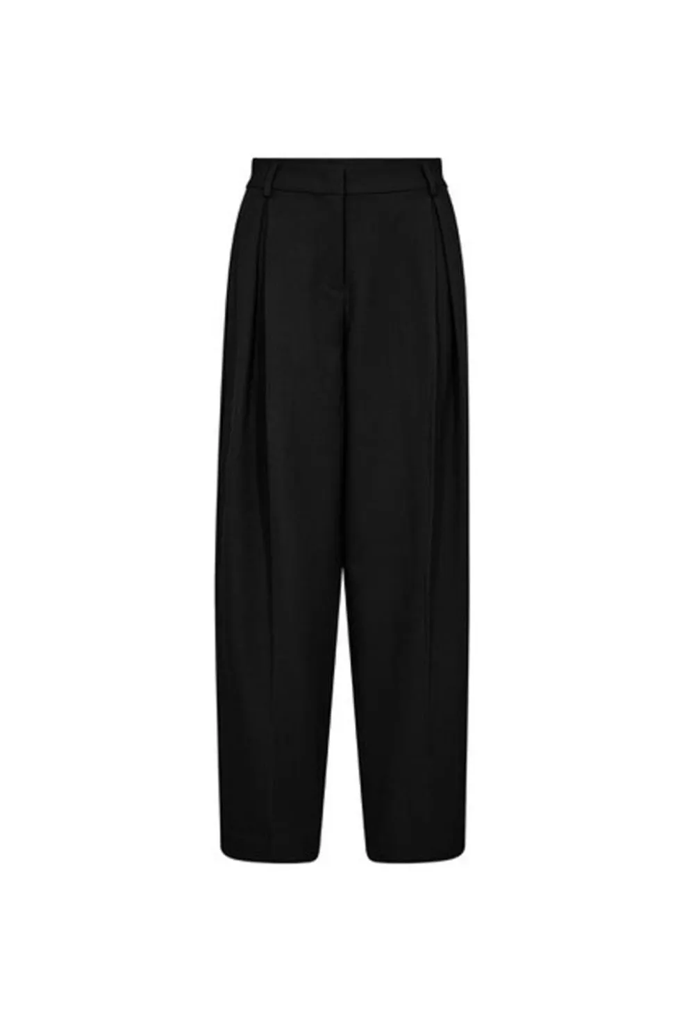 Sorte plisserede bukser fra Haute L’Amitié med høj talje og løs, lige pasform. Bukserne har bæltestropper og bred benvidde.