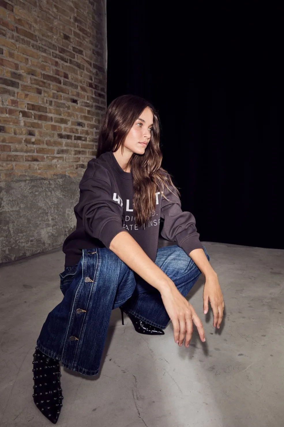 Sweatshirt fra Haute L’Amitié i mørkegrå antracit med stort logo-print på forsiden. Sweatshirten har en oversized pasform.