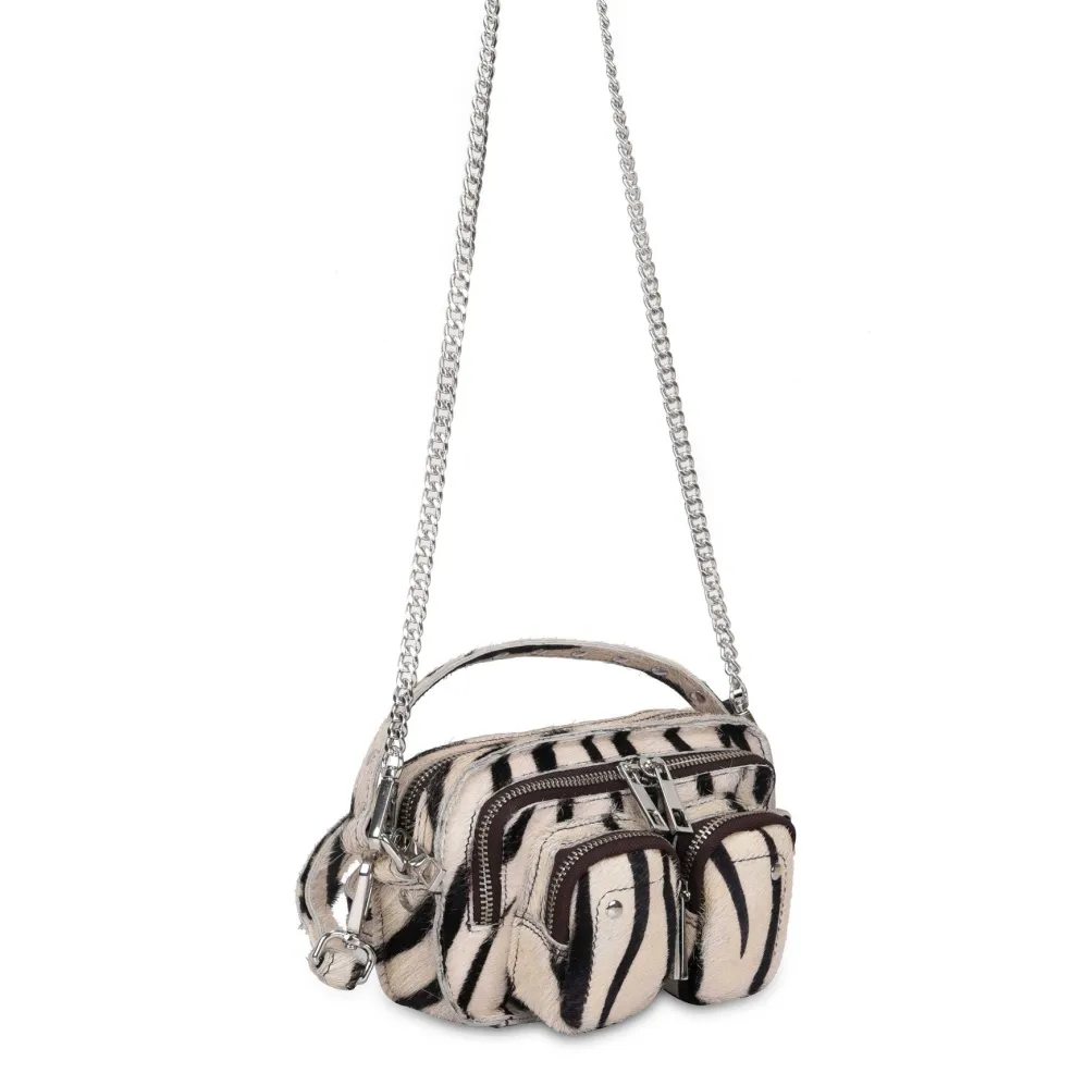 Håndtaske fra Núnoo med zebrastriber i creme og hvid. Tasken har to praktiske forlommer og et stort hovedrum med lynlåslukning.