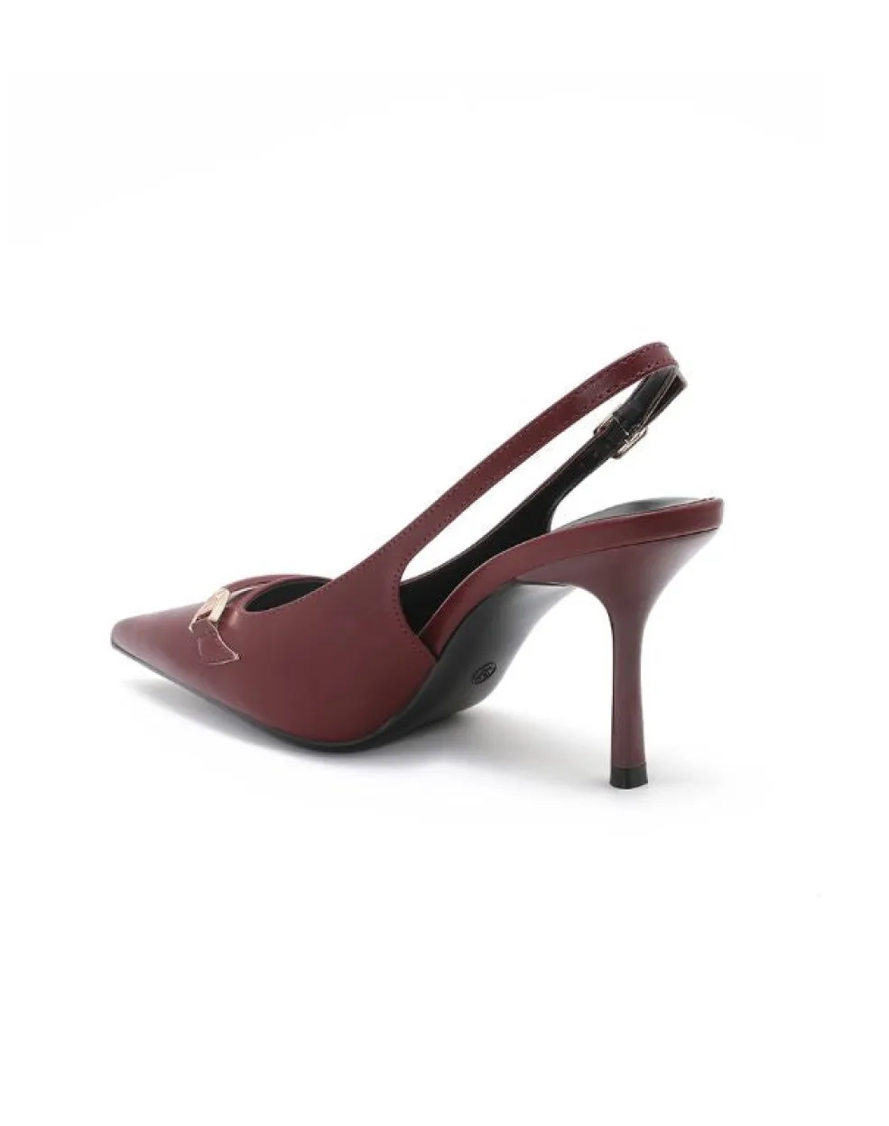 Stiletto fra Bloom i en dyb bordeauxfarve. Skoen har en spids tå og en stilethæl på 8-10 cm.