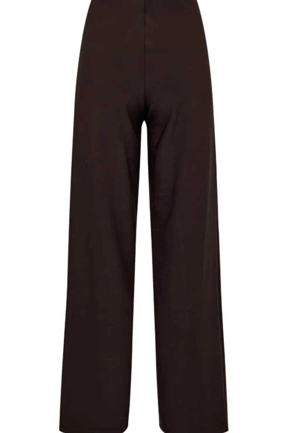 Mørkebrune viddebukser fra Liberte med høj talje og løs pasform. Bukserne har en behagelig elastikkant i taljen og går ned til anklerne.