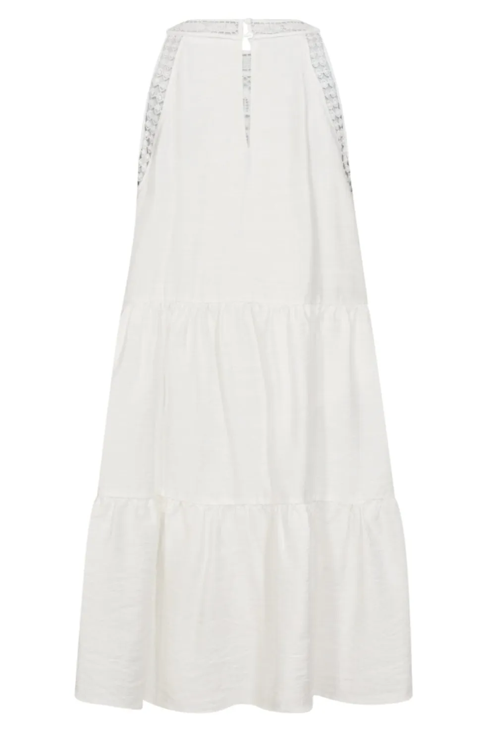 Kort kjole fra Co’Couture i off-white. Kjolen har høj hals og ærmeløst design med blondedetaljer ved halsen og skuldrene. Det lagdelte design giver bevægelse til kjolen.