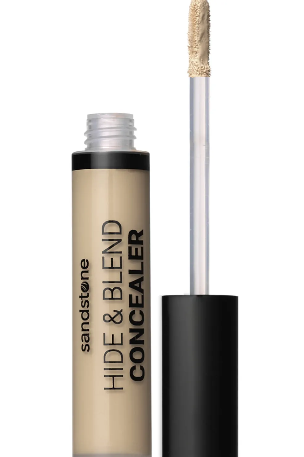 Flydende concealer fra Sandstone med fuld dækkeevne. Den er udviklet til sensitiv hud og skjuler effektivt mørke rander og urenheder med sin beroligende formel.