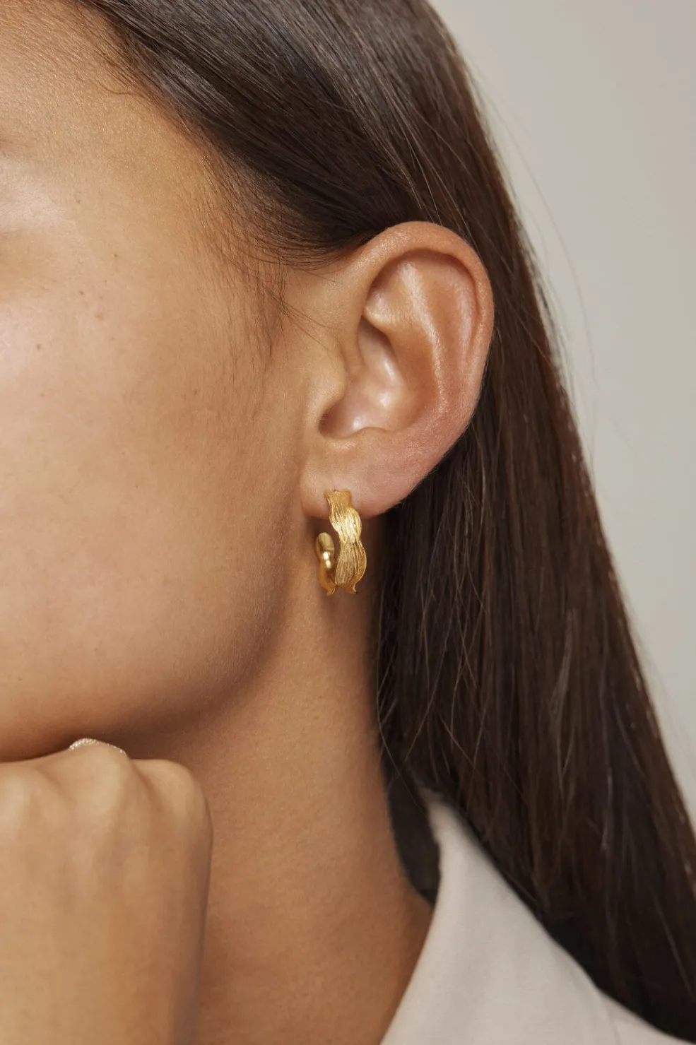 Håndlavede hoops-øreringe fra Enamel Copenhagen med en bølget form. De har en struktureret overflade og er fremstillet i genanvendt sterling sølv med guldbelægning.