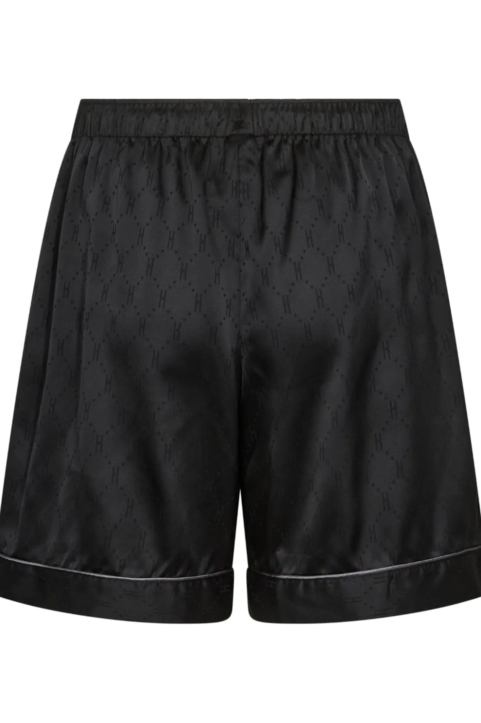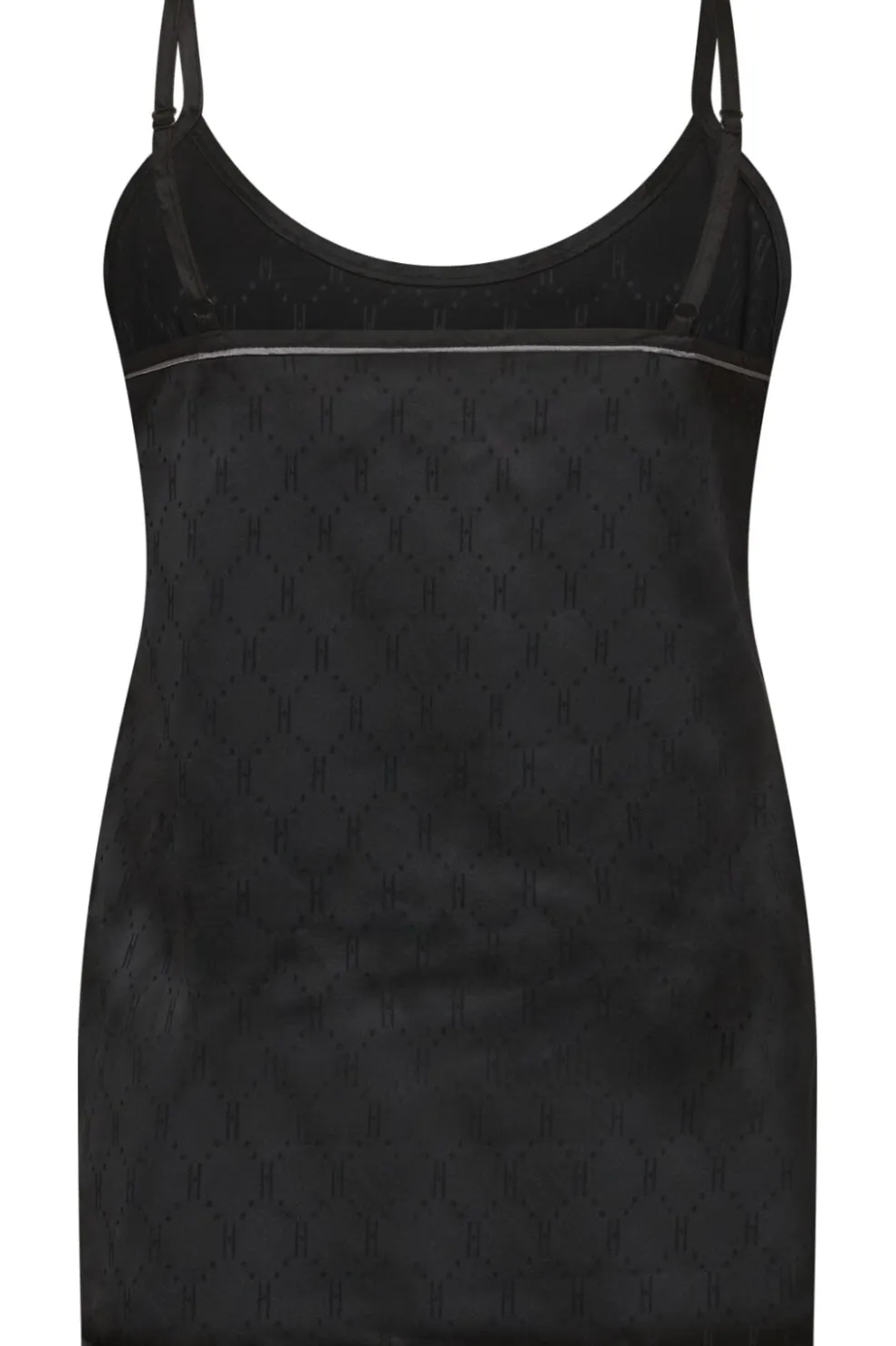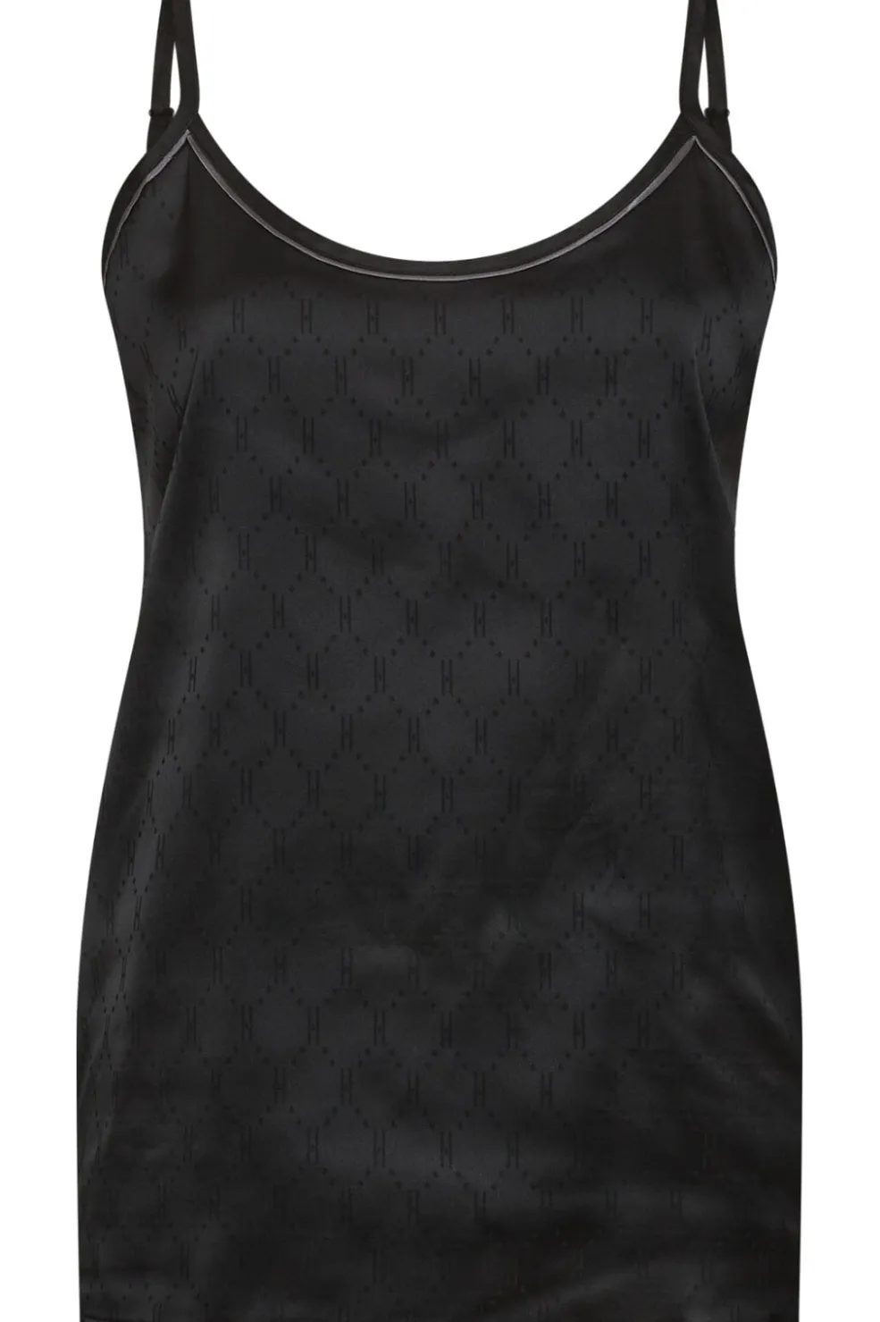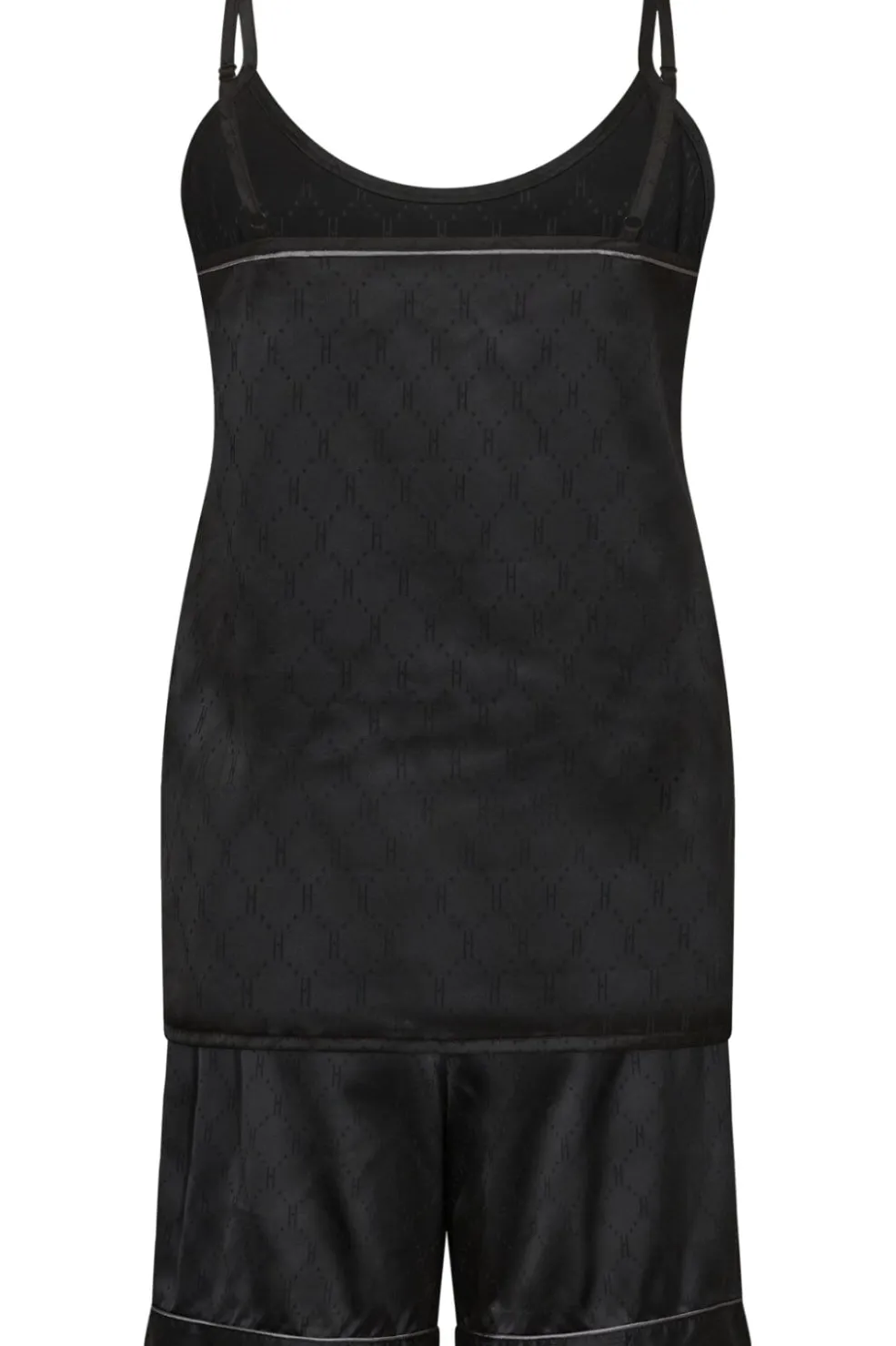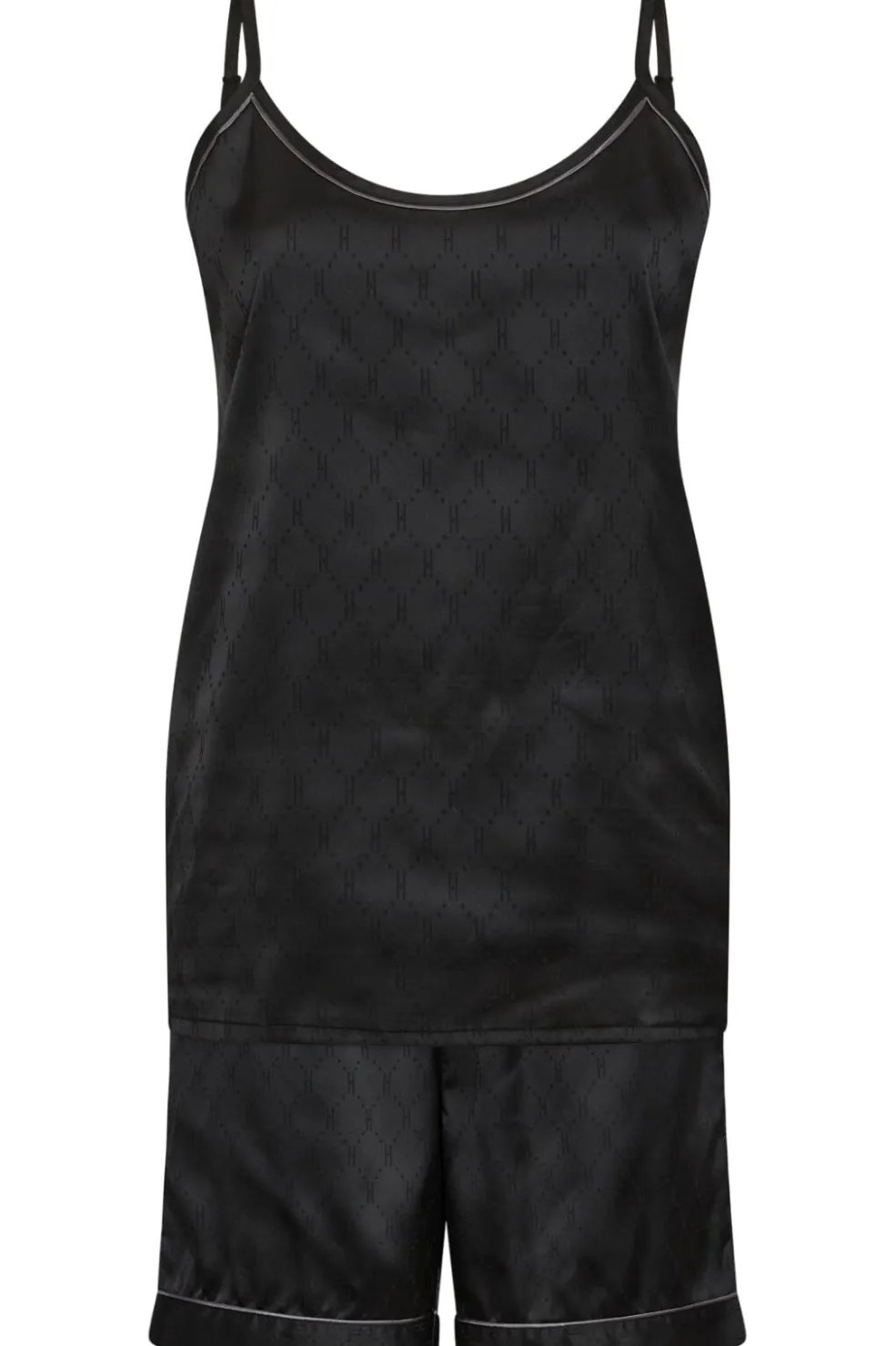 Sort satin sæt fra Hype The Detail med et subtilt mønster i stoffet. Sættet består af en top med tynde stropper og shorts med elastisk talje og snøre.