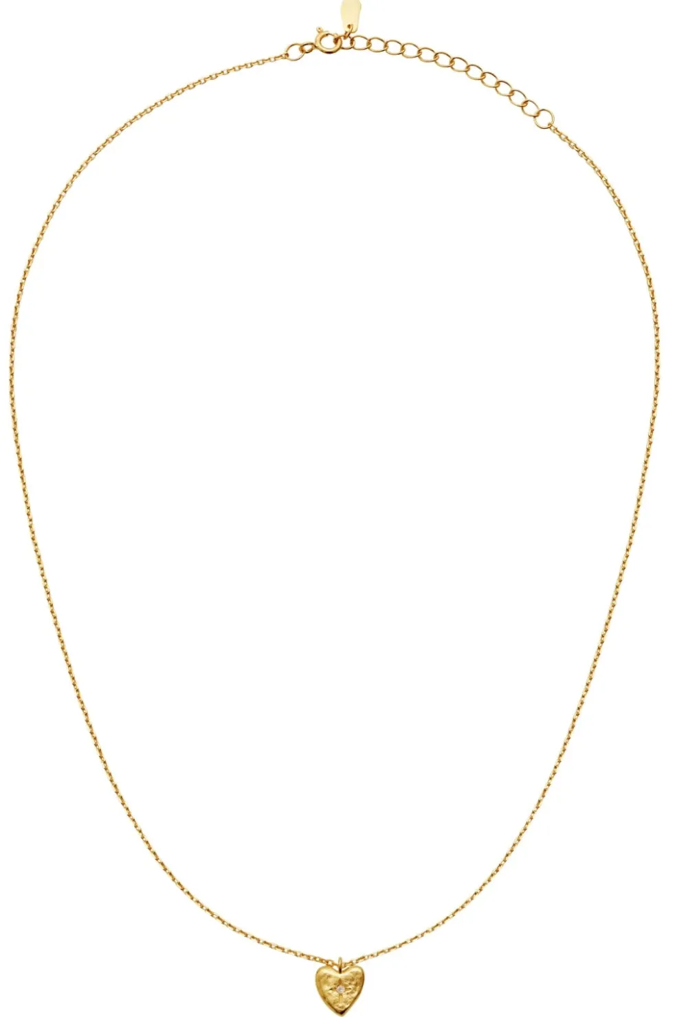Gylden halskæde fra Maanesten med hjerteformet vedhæng. Fremstillet af genanvendt sterlingsølv med 18 karat guldbelægning. Den fine kæde har et delikat design.