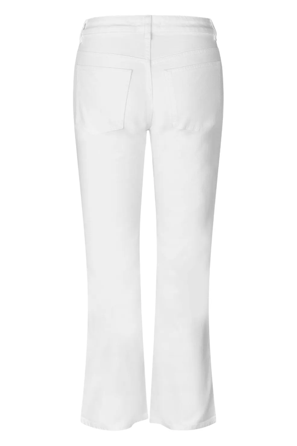 Hvide cropped jeans fra Modström i bomuldsdenim. Jeansene har høj talje med bindebånd og praktiske for- og baglommer. Den croppede længde giver et rent og enkelt udtryk.