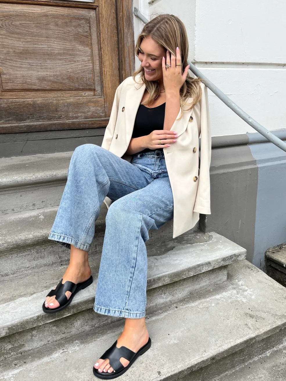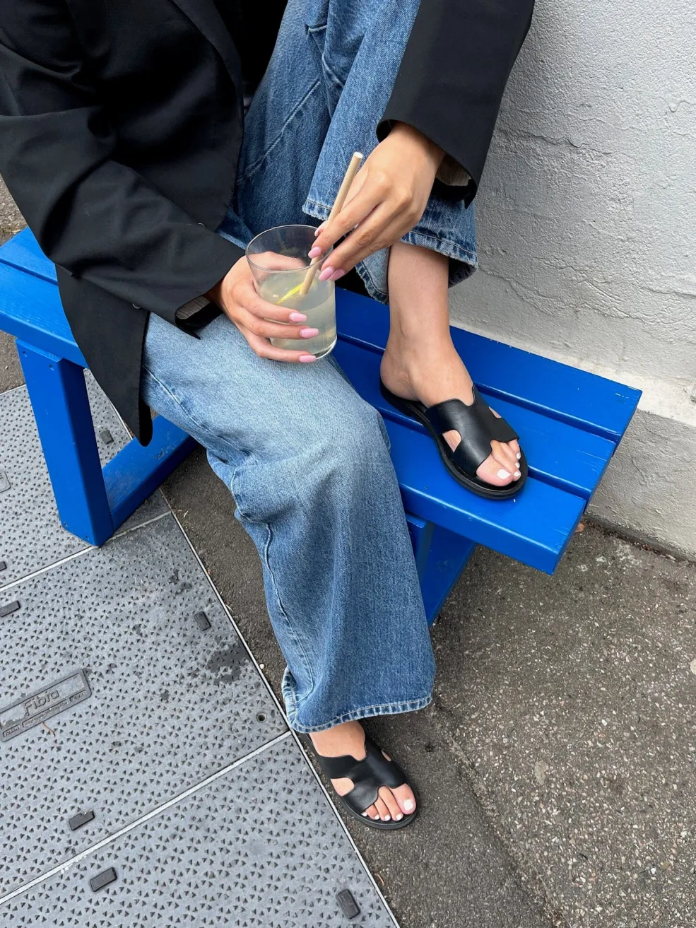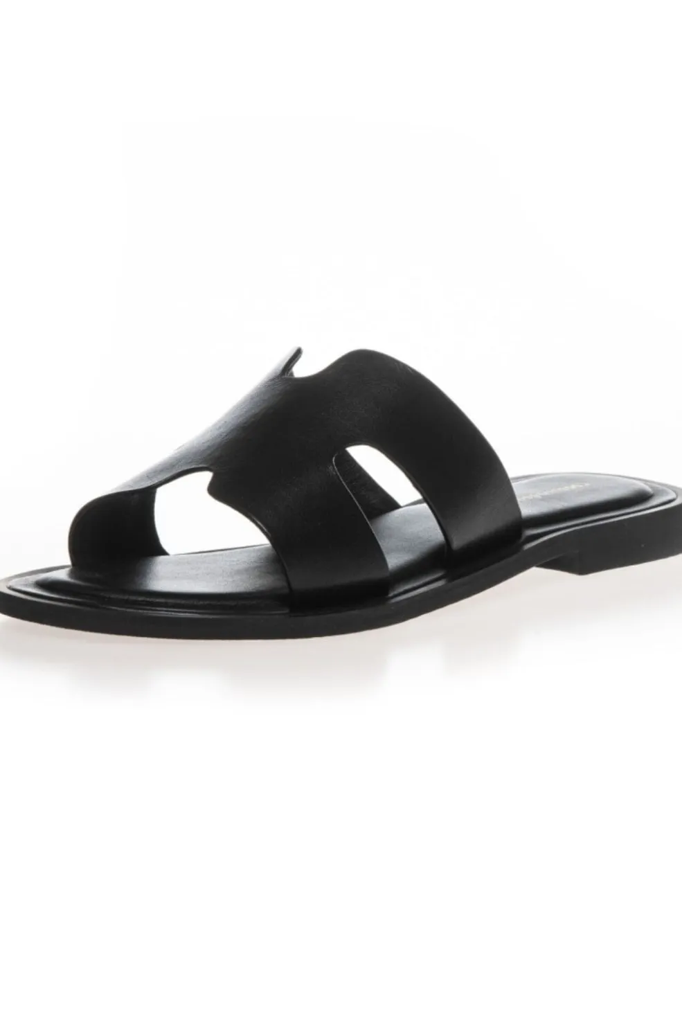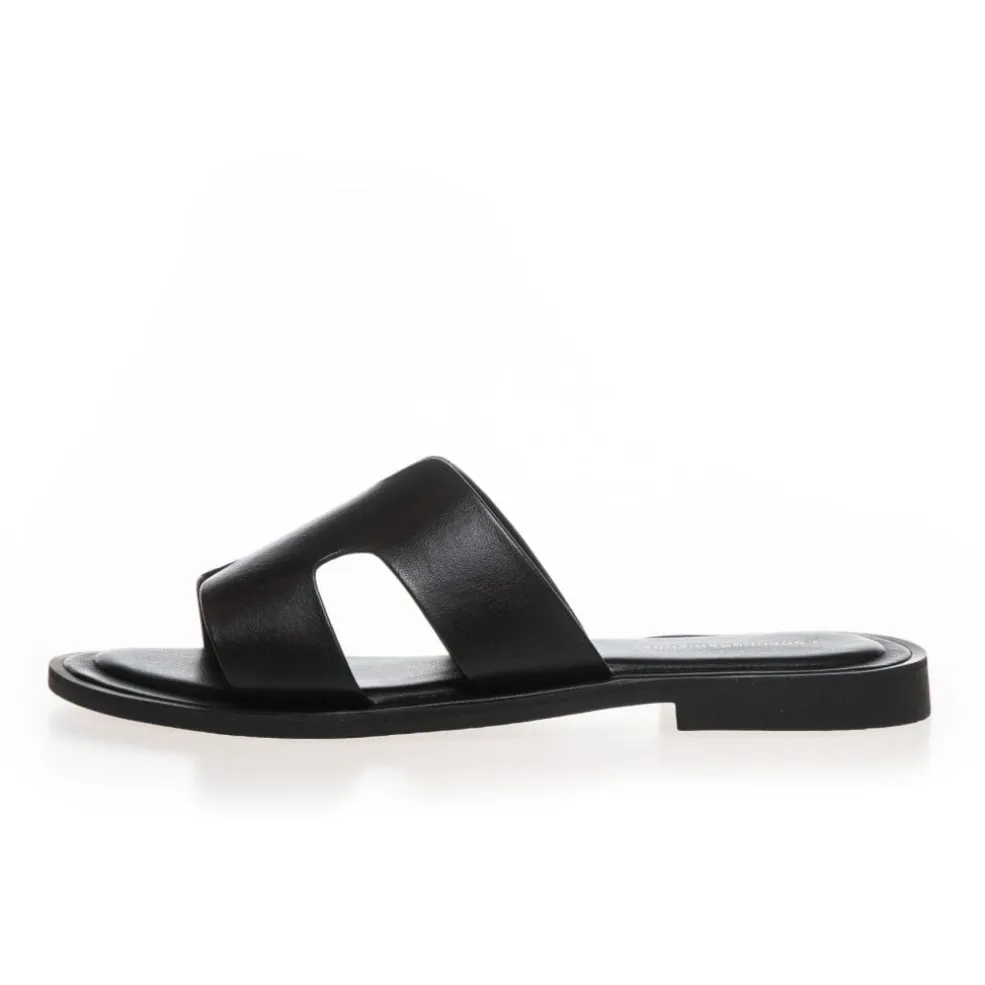 Sorte lædersandaler fra Copenhagen Shoes med et åbent design og H-formet udskæring på oversiden. Sandalerne har en flad sål og er fremstillet af blødt læder.