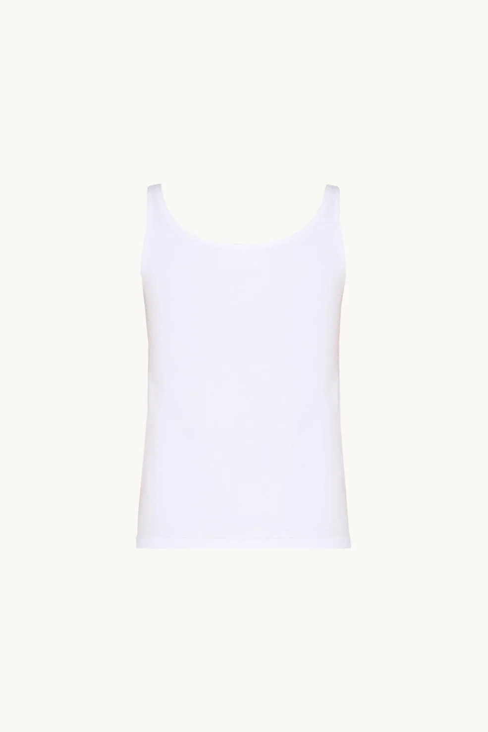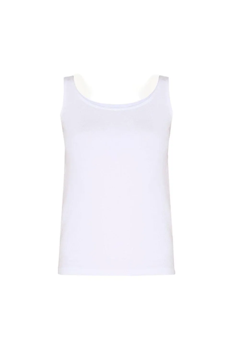 Hvid ærmeløs top fra Wolford. Toppen har en rund halsudskæring og en tætsiddende pasform. Den er lavet i en ensfarvet hvid nuance.