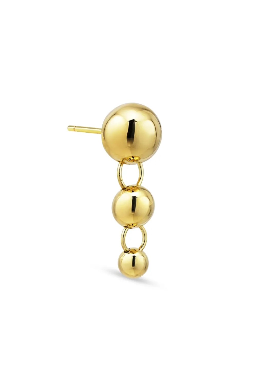 Forgyldt ørering fra Jane Kønig med tre kugler i forskellige størrelser. Øreringen er lavet af sterlingsølv med 18 karat forgyldning og har en skinnende overflade.