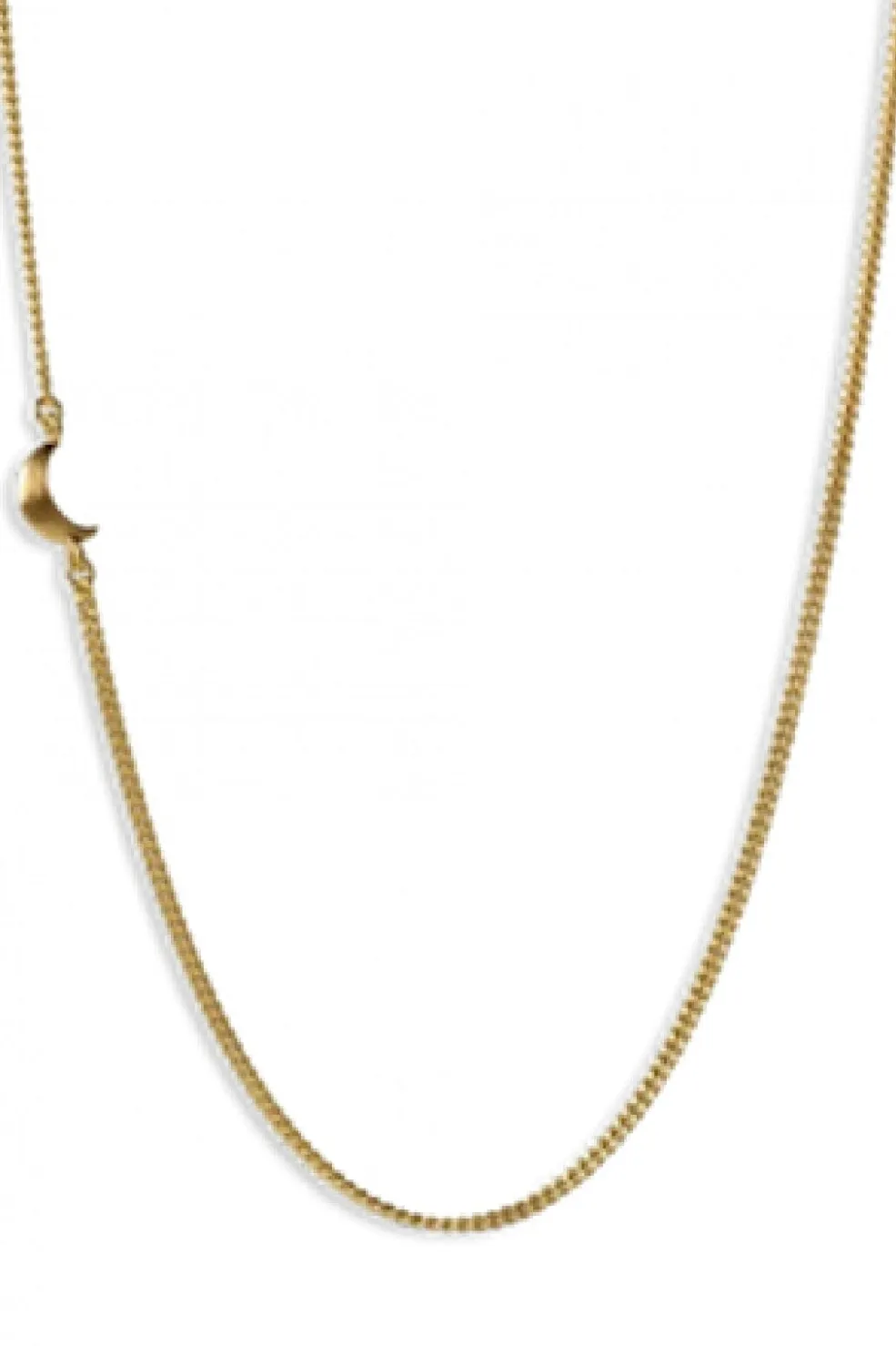 Gyldent halskæde fra Jane Kønig med en tynd kæde og halvmånevedhæng. Halskæden er lavet af sterling sølv med en gylden finish.