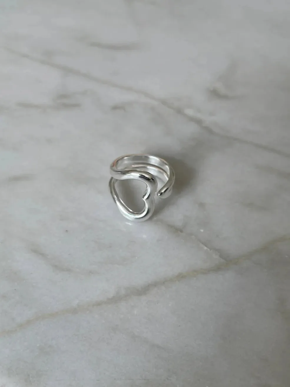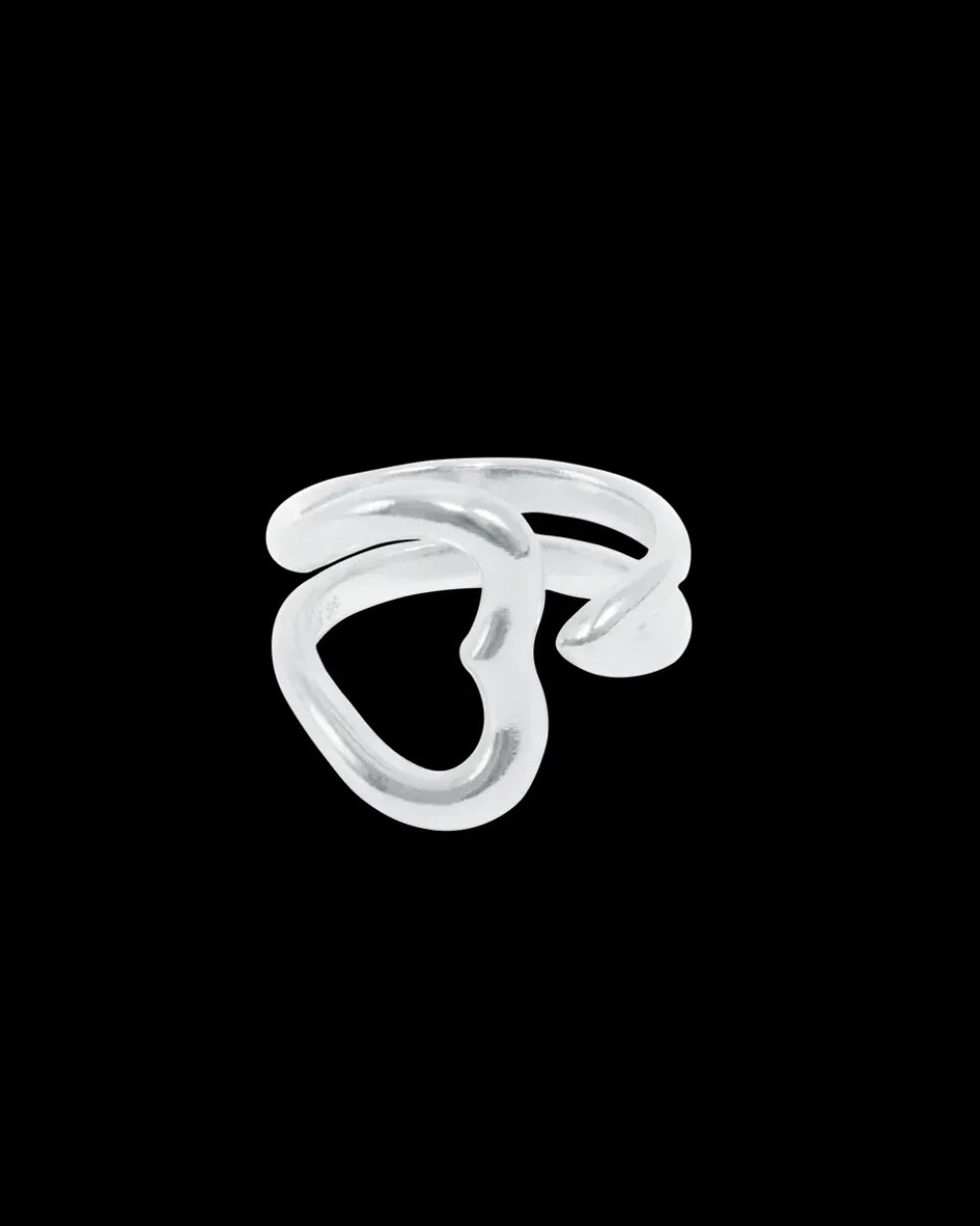 Ring fra Jane Kønig med åbent hjerte-design i sølv. Ringen er lavet af sterlingsølv og passer til personlig udsmykning.