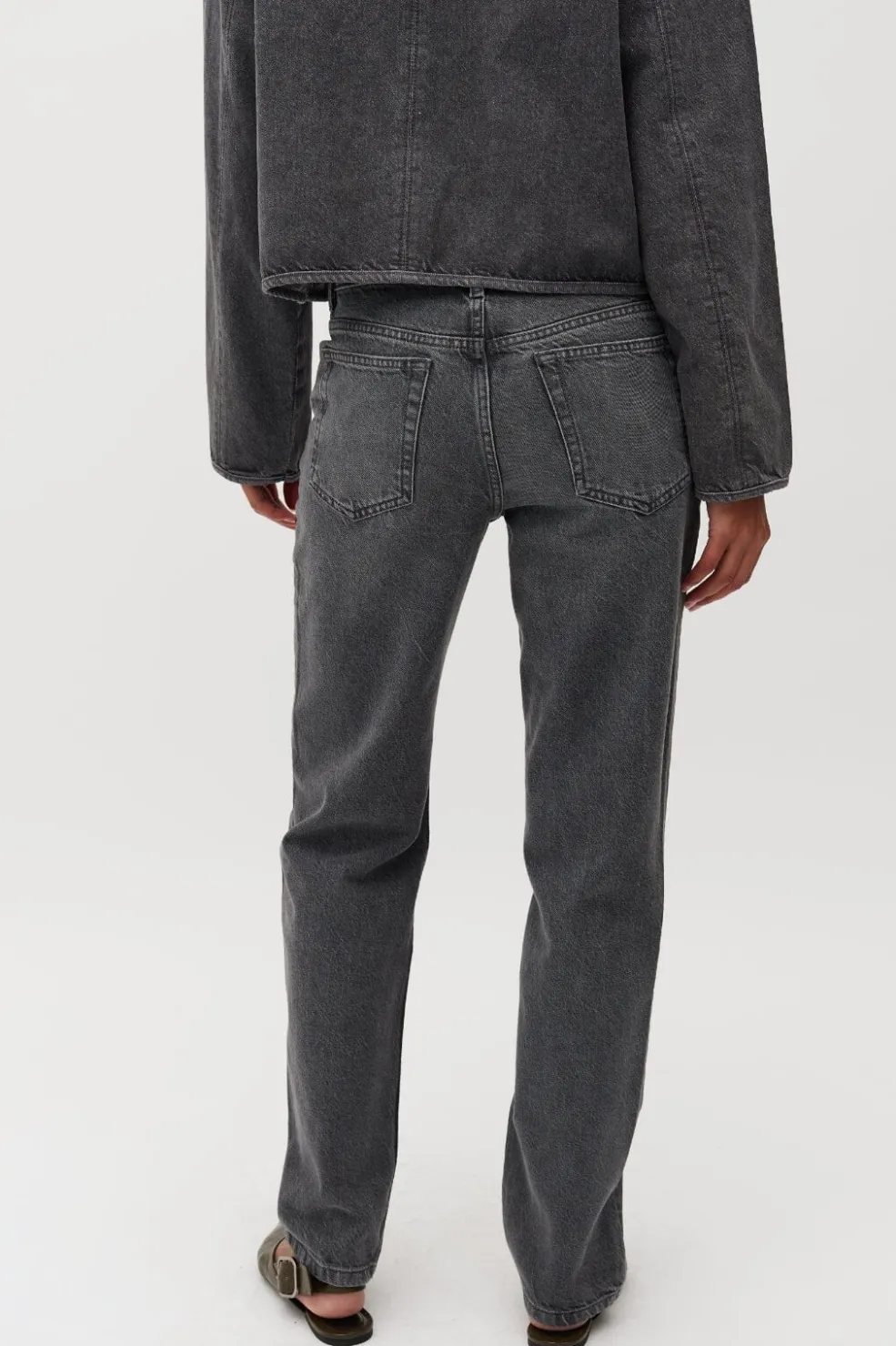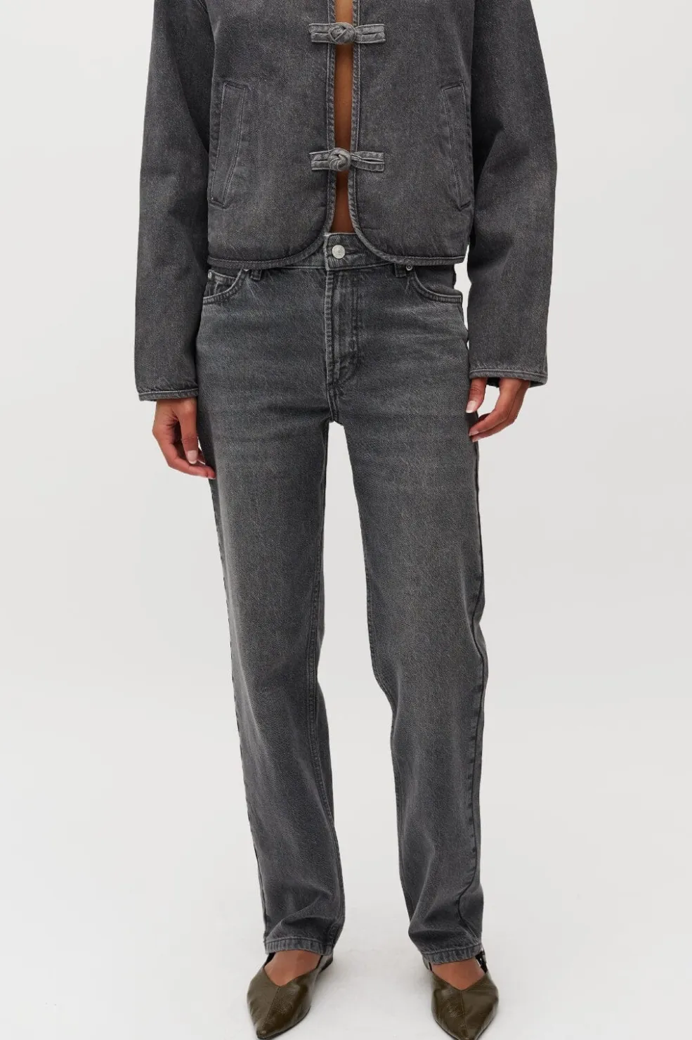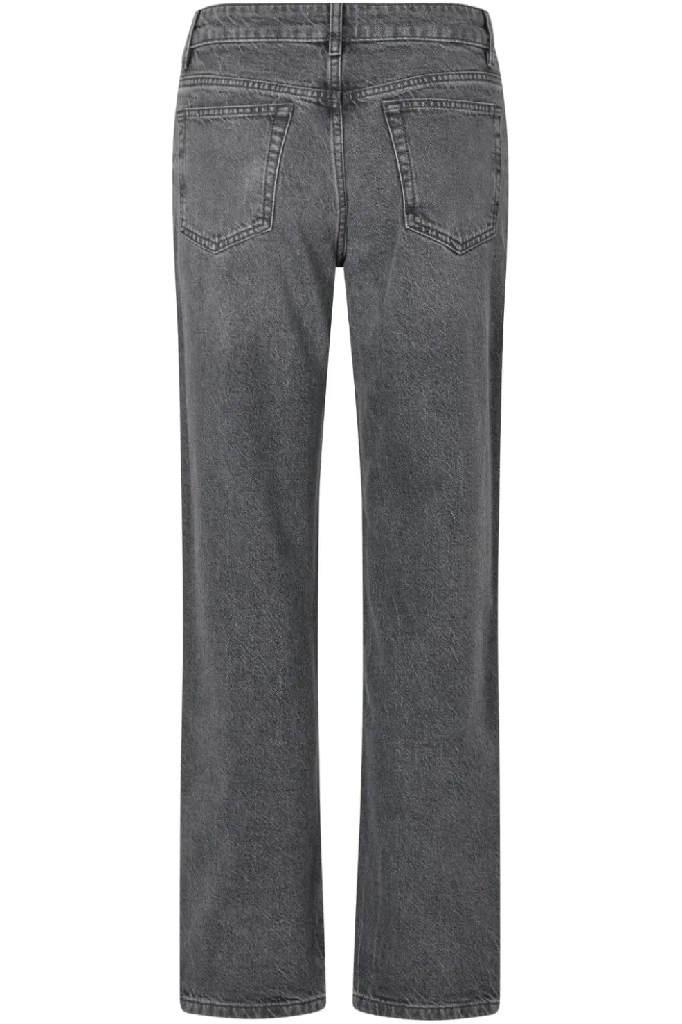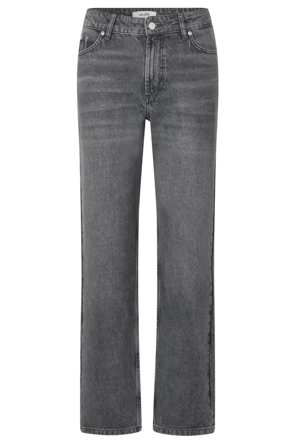 Jeans fra MbyM i en grå-sort acid wash. Modellen har regular fit med normal talje og ankellængde. De dekorative syninger giver jeansene et rustikt præg.